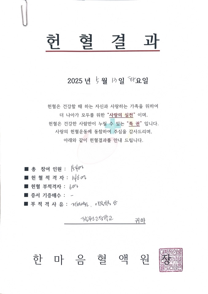 2025학년도 1학기 '사랑의 헌혈' 행사