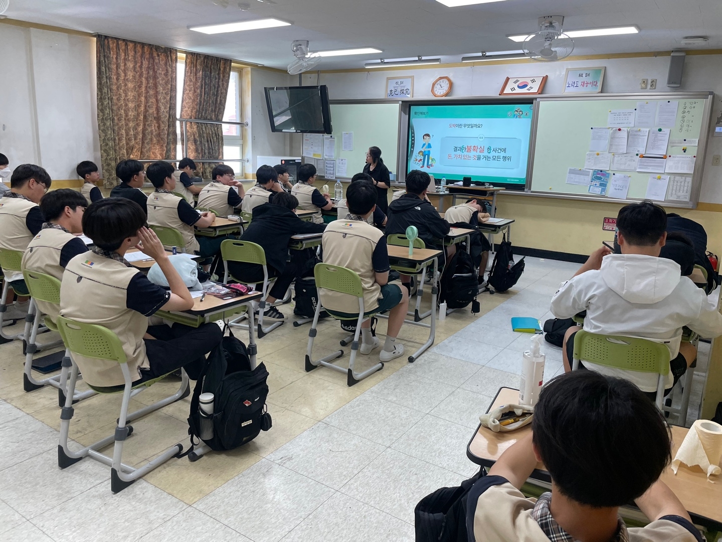 경남도박문제치유센터 이수영 강사 외 3분이 본교를 방문하여 학생들이 도박에 대한 경각심을 가질 수 있도록