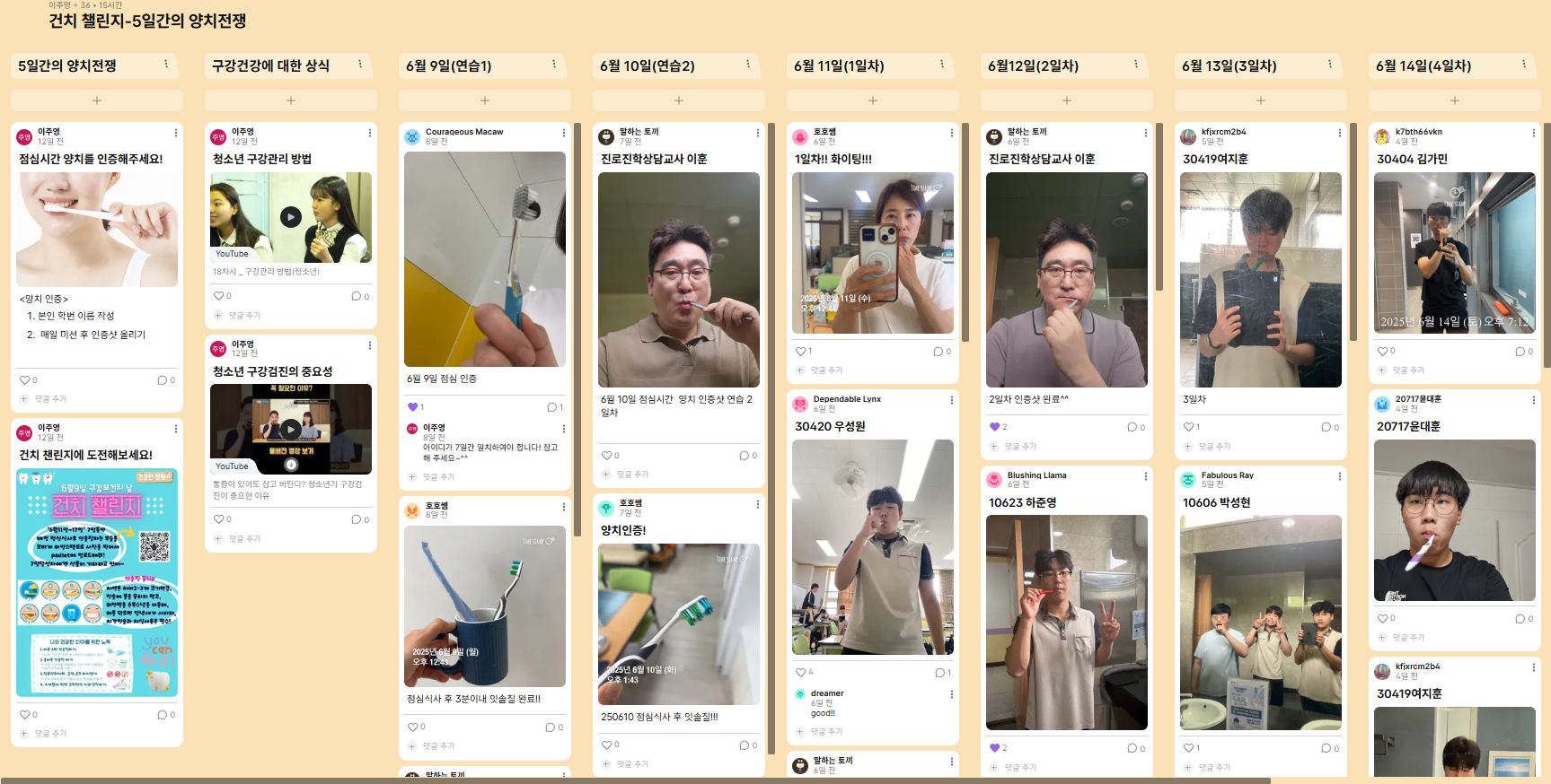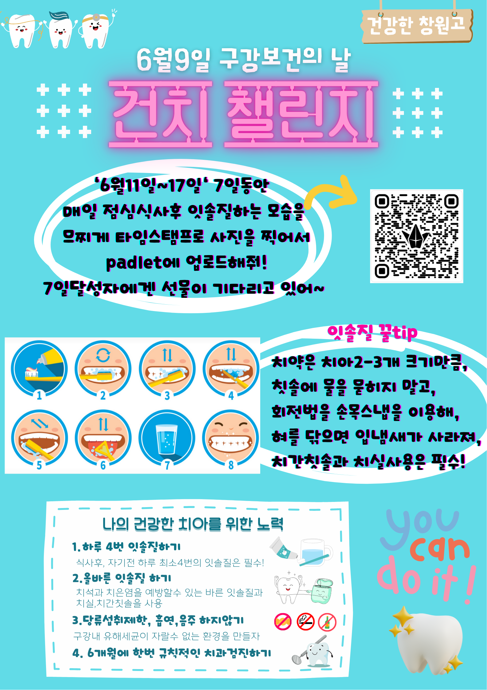 내용: 구강건강 교육 및 홍보, 구강건강 퀴즈, '7일간의 양치전쟁, 치실사용 교육