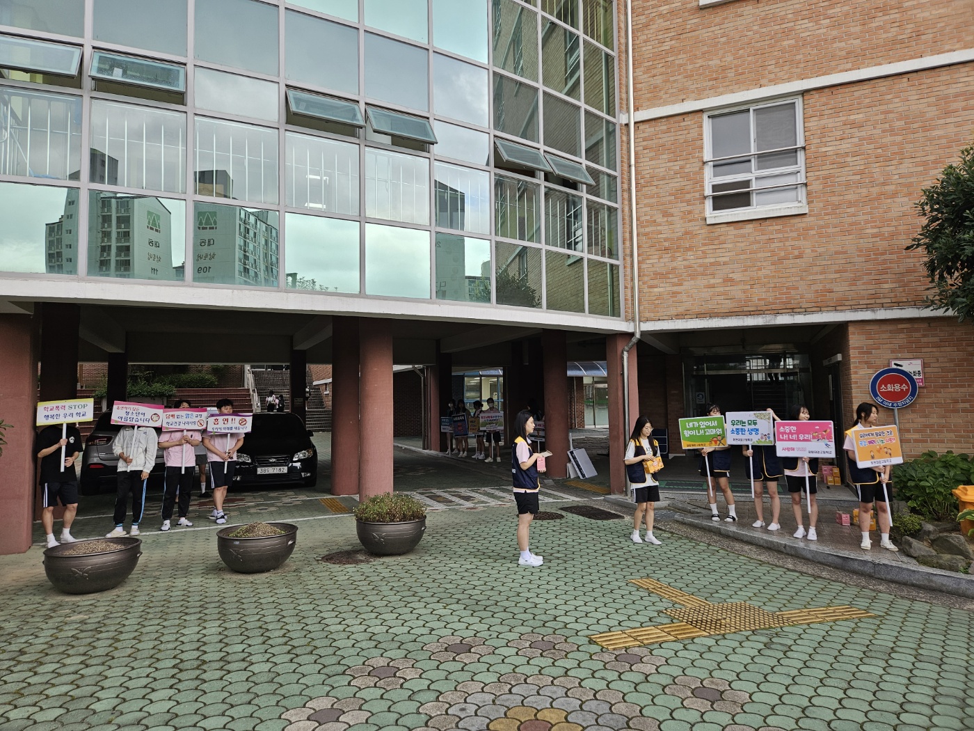 2024. 8. 28.(수) ~ 29.(목) 아침 등굣길 생명존중 및 자살예방, 학교폭력 예방 및 안전 캠페인을 실시하였습니다.
