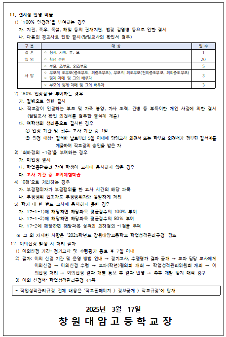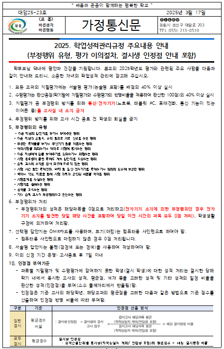 <2025학년도 학업성적관리규정 주요내용 안내> 가정통신문 파일첨부합니다.
