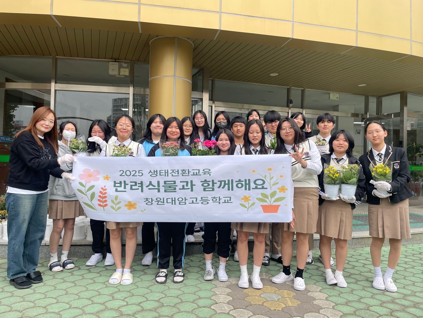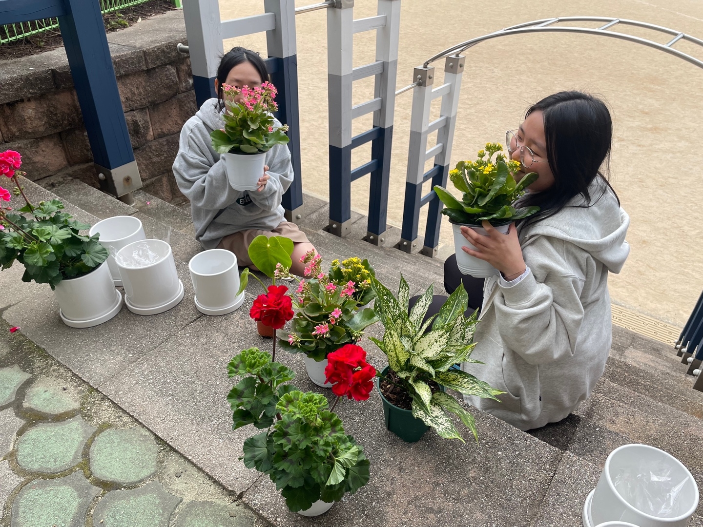 곳곳에 놓인 꽃들 덕분에 학교는 어느새 봄 향기로 가득 물들었습니다.