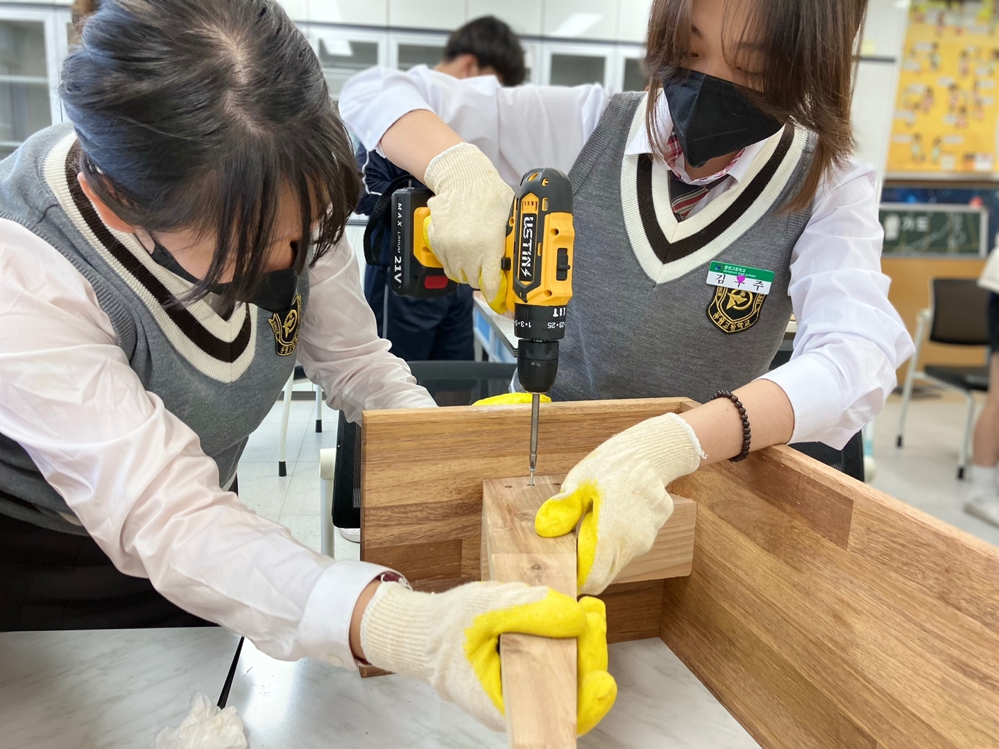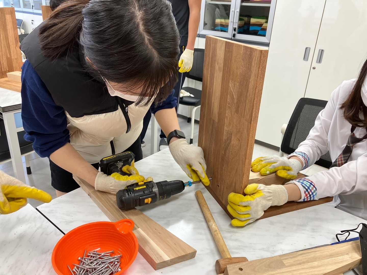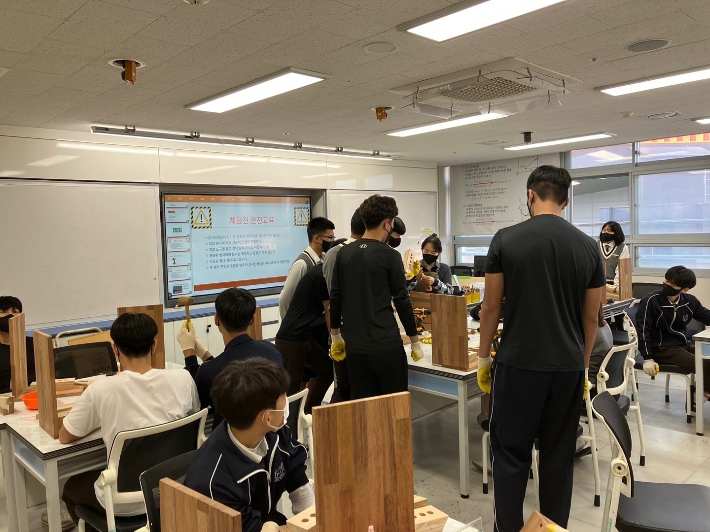 2023.10.25(수) 지구과학실 2023학년도 꿈도사 희망 나누기 사업의 일환으로 희망의자 제작 활동을 실시하였습니다. 먼저, 의자의 제작 원리에 대한 이론 강의를 듣고 안전교육을 실시하였습니다. 이후 학생들에게 의자를 만드는 방법을 단계별로 가르쳐주면서 원목으로 스스로 의자를 만드는 경험을 하였습니다. 의자를 만드는 과정이 익숙하지 않아 학생들이 고생을 많이 하였지만 이처럼 고생하여 만든 의자에 애착도 생기고 무엇이든지 스스로 만들 수 있다는 자신감을 얻는 시간이 되었습니다.