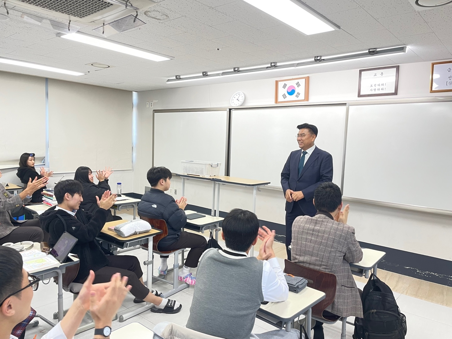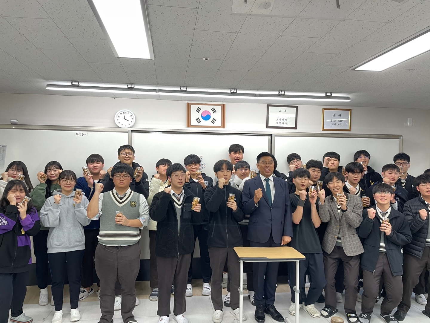 2023.11.14(화) 동원고등학교 총동창회장 최정우 동문이 학교를 방문하여 후배들의 대학수학능력시험의 응원과 수능 응원 선물 전달 행사가 있었습니다. 최정우 동문은 유년 시절의 경험과 수능을 준비하는 후배 학생들에게 격려를 아끼지 않고 전해주었습니다. 이에 3학년 학생들은 선배 동문의 격려를 바탕으로 수능을 앞둔 본교의 학생들은 의지를 다지고 수능에 임하고자하는 진지한 각오를 다지는 기회가 되었습니다. 앞으로 남은 수능까지 최선을 다해 준비해서 좋은 결과가 있도록 하겠습니다. 동원고등학교 화이팅 감사합니다.