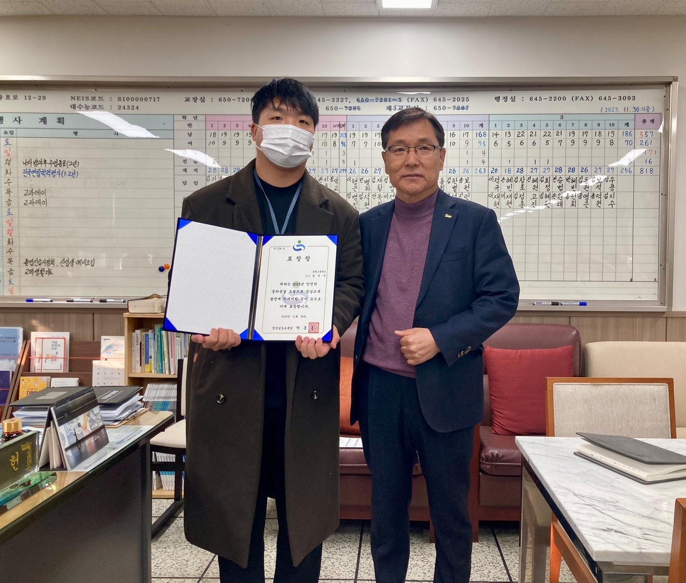 과학대전에 참여했던 손가빈 학생이 교육감 표창장을 수상했습니다.