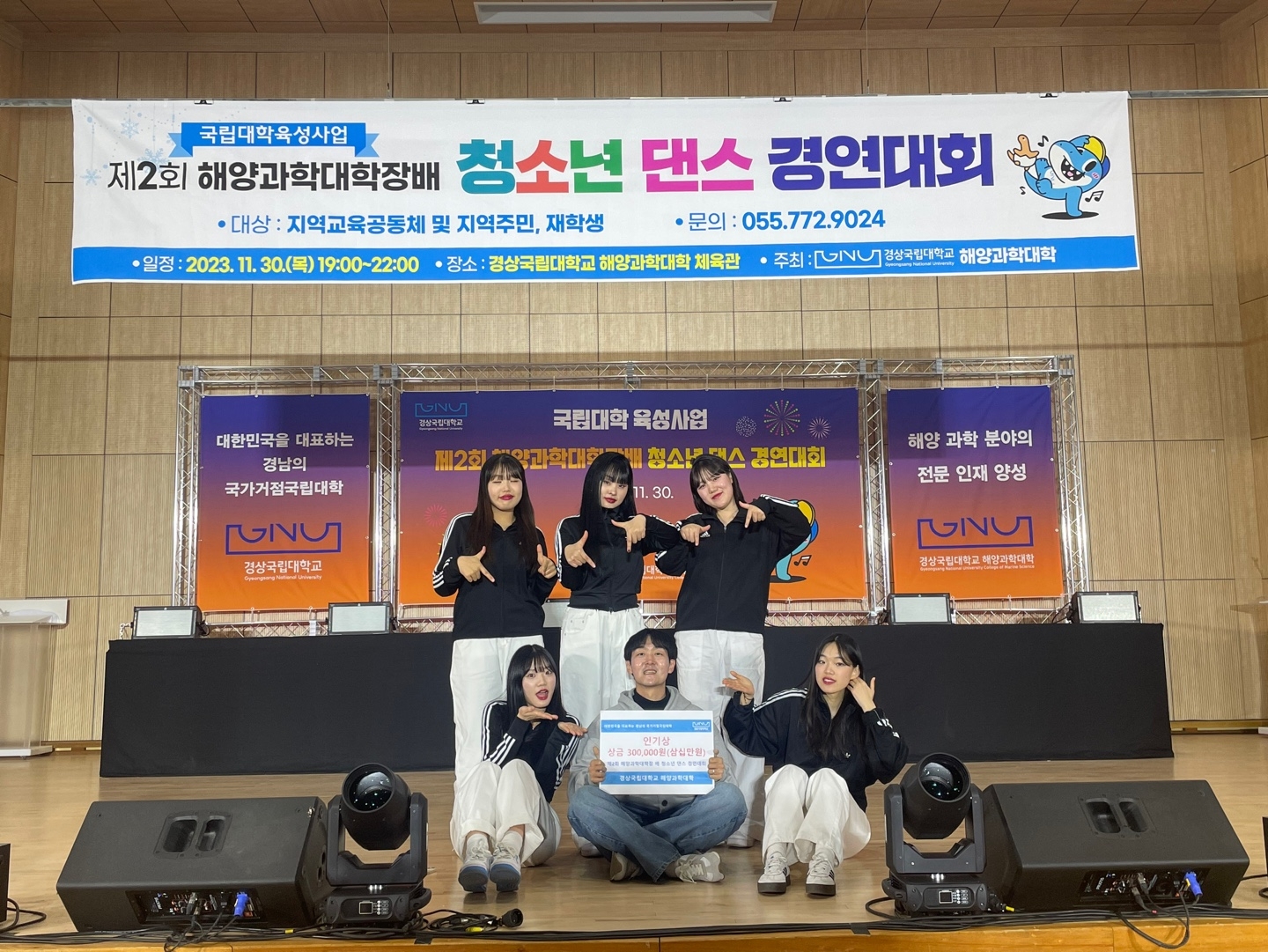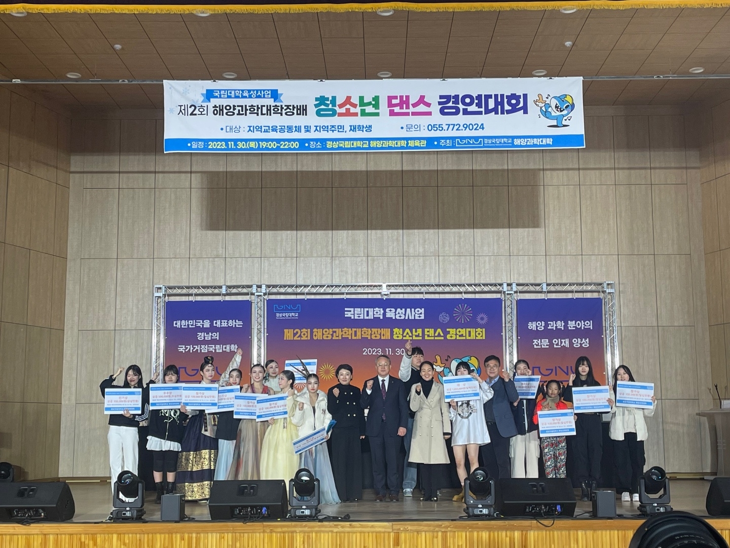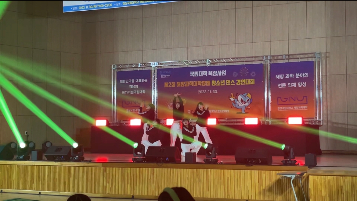 2023. 동원고등학교 청소년 댄스 경연 대회 참석 경상국립대학교 해양과학대 청소년 댄스 경연 대회 2023년 11월 30일(목) 경상국립대학교 해양과학대에서 주최로 열린 청소년 댄스 경연 대회에 세렌디피티 댄스동아리 학생들이 참석하였다. 통영시 관내에서 개최하는 댄스 경연 대회는 청소년들의 잠재된 끼와 재능을 마음껏 발휘하고 선의의 경쟁을 통해 자신의 역량과 문화적 감성을 키워나가기 위해 마련되었다. 대회에 참여한 총 13팀 중 댄스 부분에서 뛰어난 안무 창작과 퍼포먼스에서 전체 구성원이 하나된 동작으로 무대를 장악한 제이킹덤 댄스 학원 팀이 대상을 받았고, 세렌디피티 학생들이 4등인 인기상을 받았다. 행사장을 찾은 청소년은 “학업에 지치고 공부에 대한 스트레스 많았는데 힘찬 응원과 함께 열정적인 무대를 보니 그동안 쌓인 스트레스가 조금은 해소됐다”며 “앞으로도 청소년을 위한 문화행사가 많이 있었으면 좋겠다”고 소감을 밝혔다.