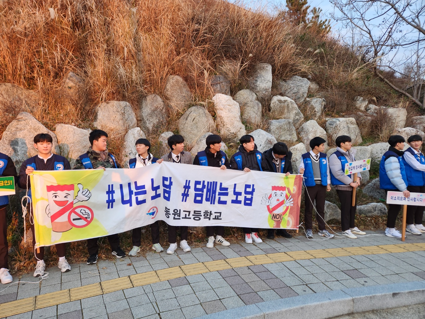 희망 학생들은 12월 27(수) 아침 교문에서 등굣길의 학우들을 대상으로 흡연 예방 금연 실천 캠페인을 실시하였다. '나는 노담, 담배는 노답' 이라는 구호를 함께 외치고 피켓, 플랜카드를 활용한 홍보활동을 이어나갔다. 흡연으로 인한 직·간접적 피해를 안내하고 건강한 신체를 유지하기 위해서 함께 노력하는 시간을 가졌다.