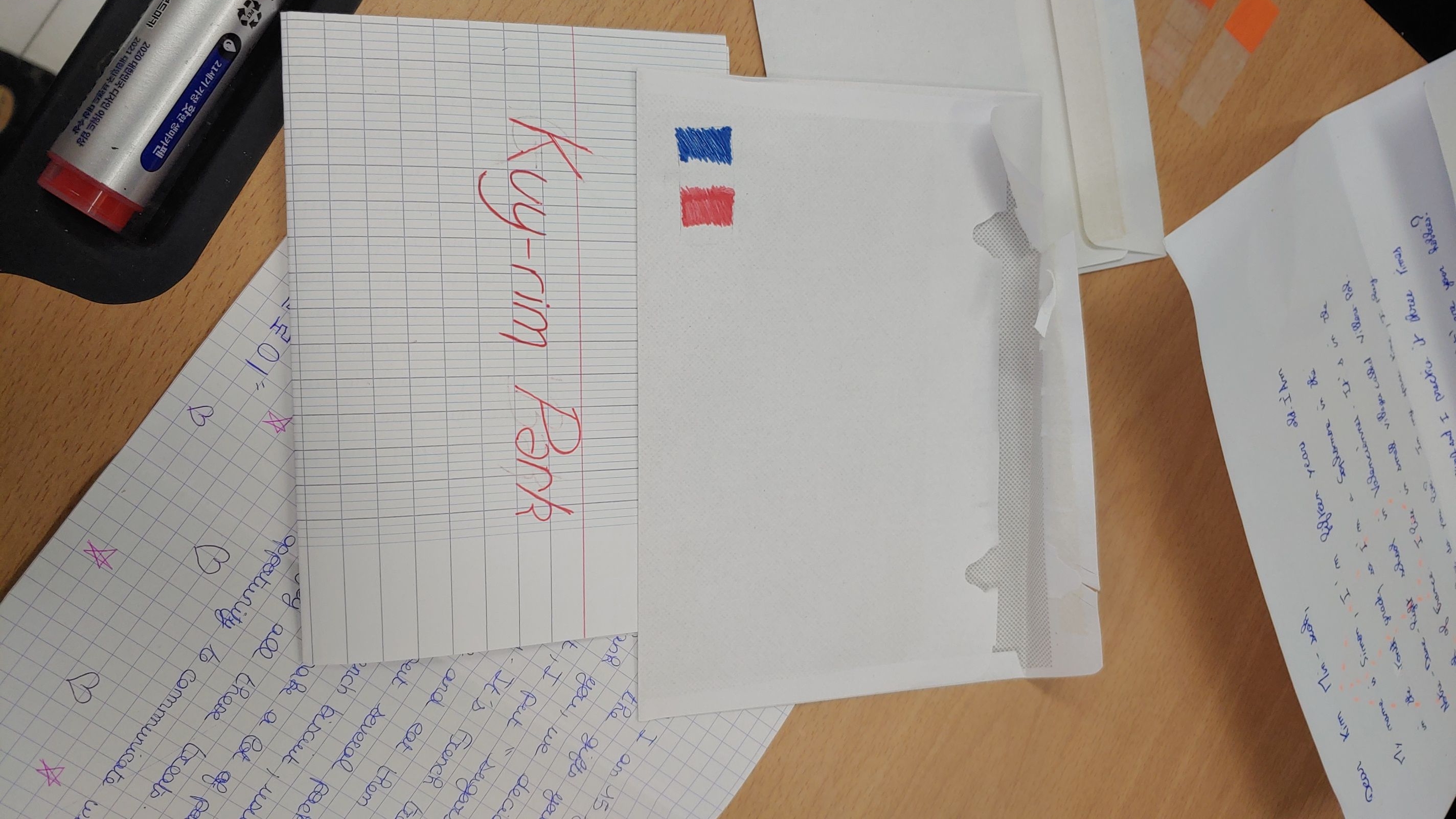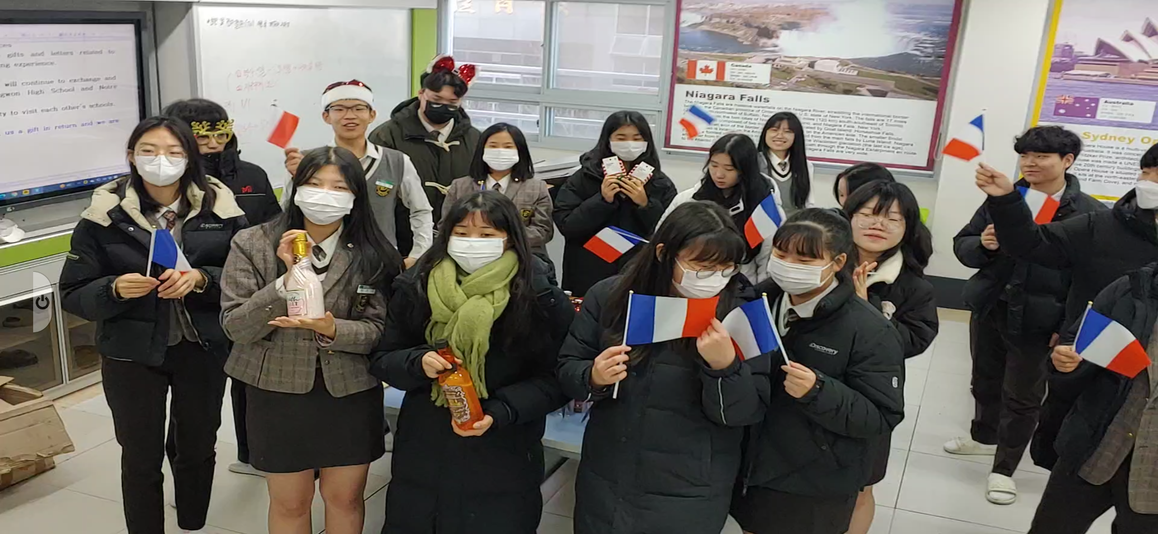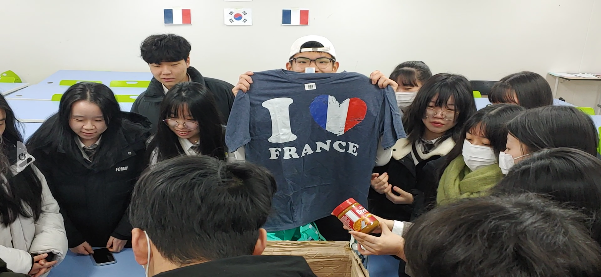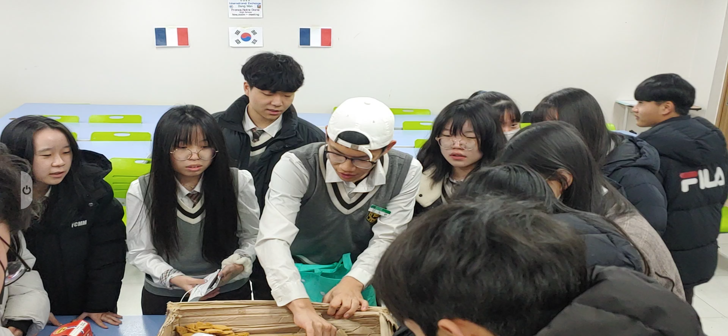 프랑스 노트르담 고교는 이에 대한 답례로 컬처박스를 보내서 12월 말경 도착하였고 오늘 2024. 1.2 (방학식 날)에 언박싱을 하였다. 국제교류 (1기)에 참석한 학생들은 프랑스에서 보낸 과자선물을 한아름 나눴고 교무실에 선생님들과도 프랑스 과자를 나누며 문화를 교류하는 기회가 되었다.