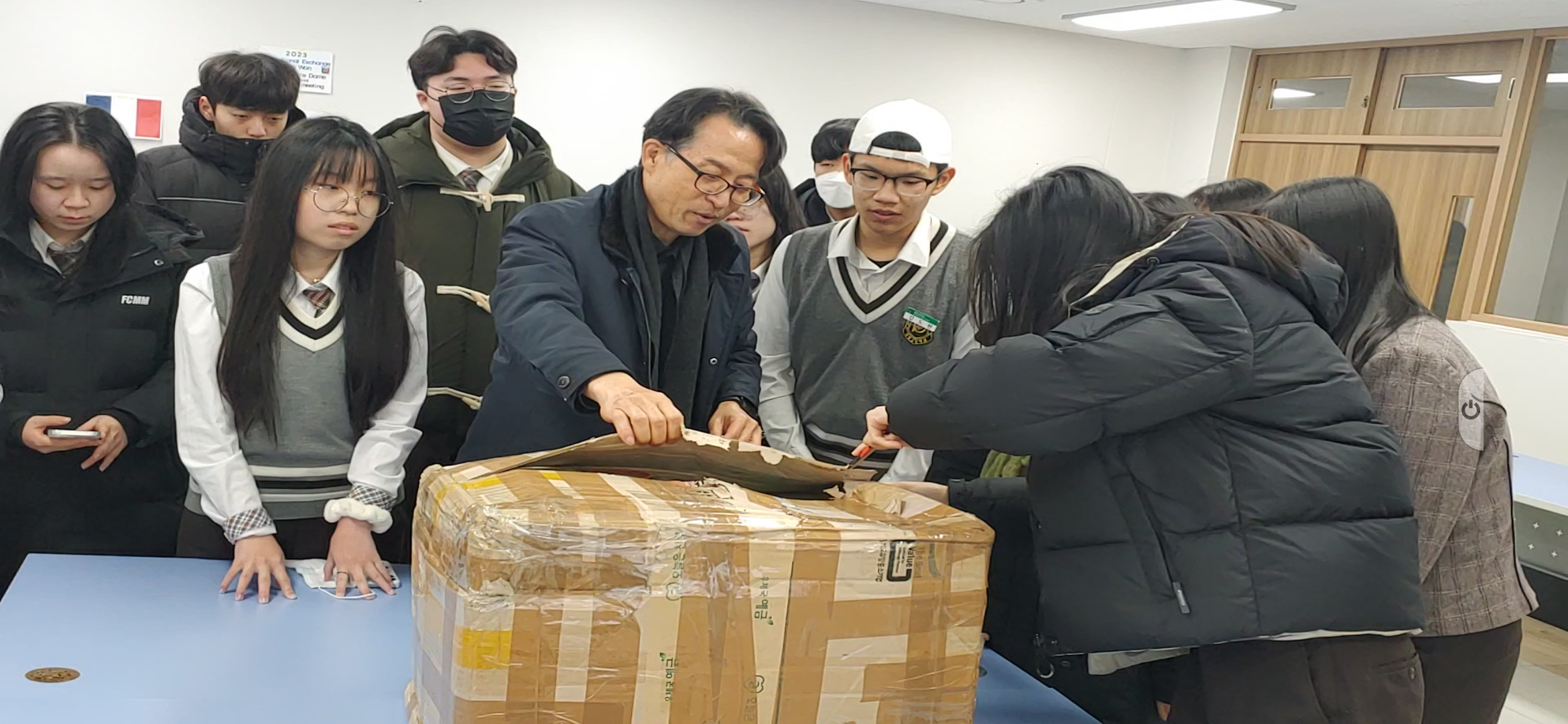 (언박싱 영상은 동원고 학생회 유튜브에 올려서 노트르담 고교와 공유하였다. ☞https://youtu.be/iDi8Wr7G48g?si=8vxjl3scouW0c3MS