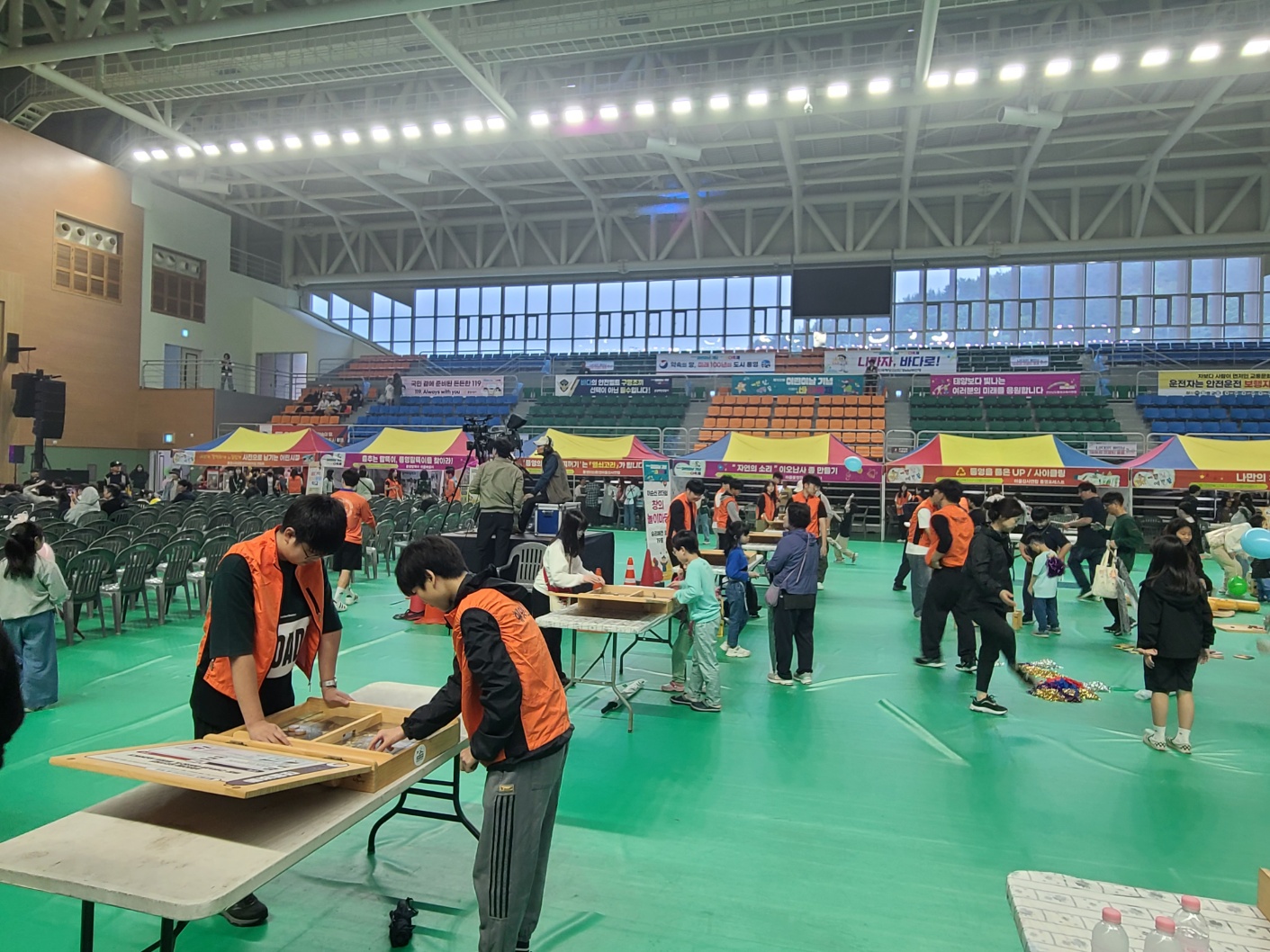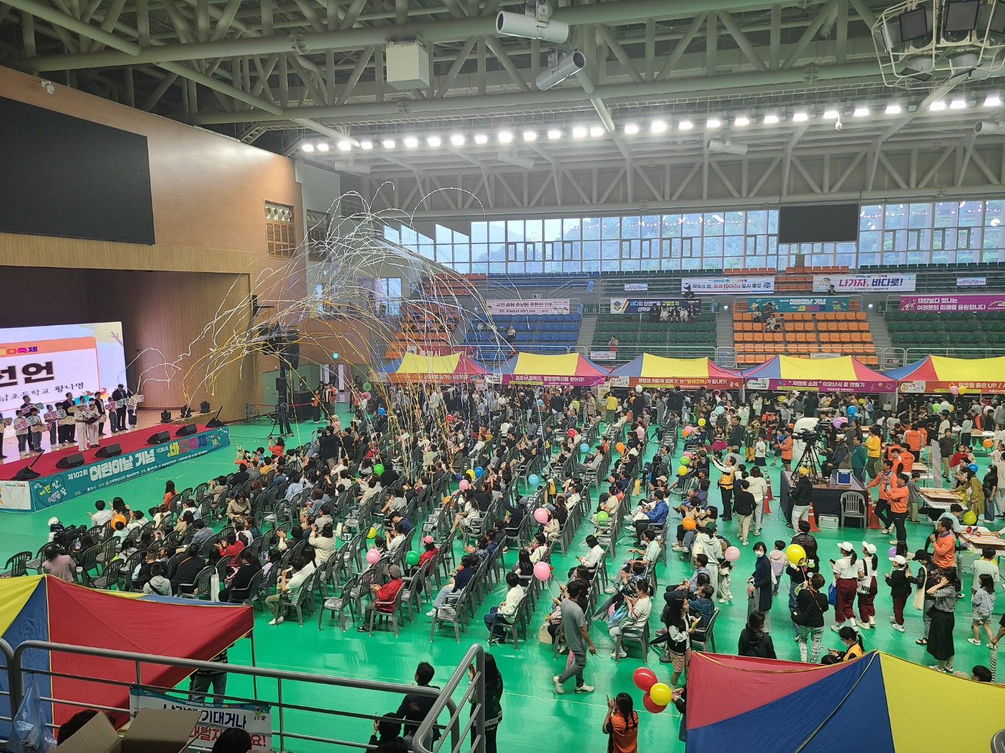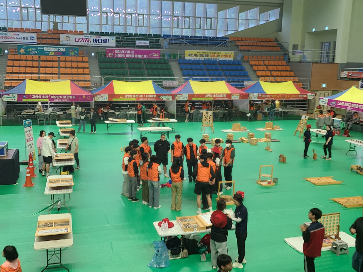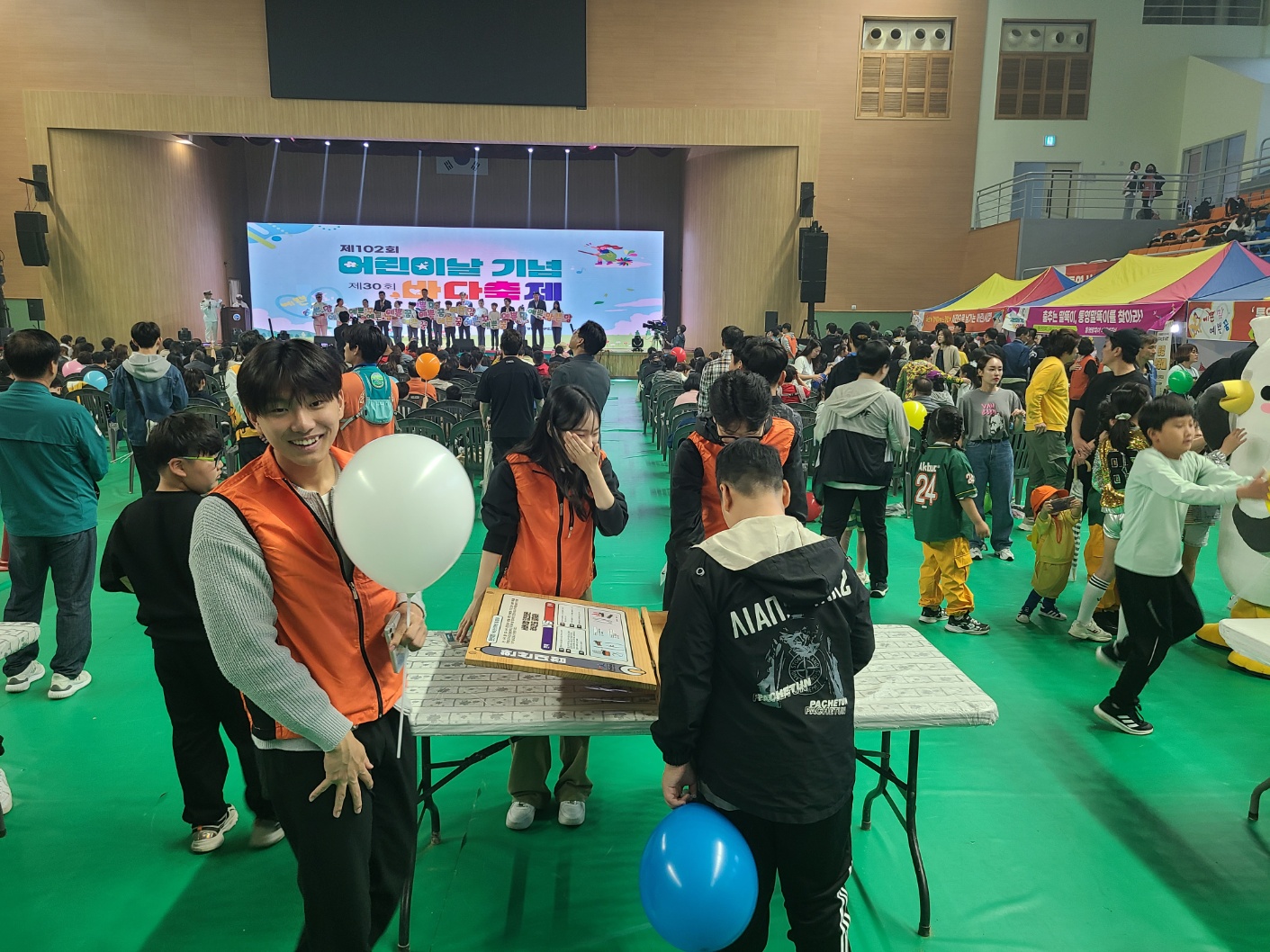 동원고 학생 50명은 지난 5월 5일에 통영 실내 체육관에서 열린 어린이날 행사에서 봉사 활동을 실시했습니다. 이 행사는 원래 내죽도 공원에서 실시하는 것으로 예정되었으나, 우천 관계로 실내에서 개최되었습니다. 동원고 학생들은 이날 여러 체험 부스와 놀이 마당 등에서 어린 학생들의 즐거운 체험을 도왔으며, 행사가 7시간에 걸쳐 진행되었지만 모두 성실하게 각자 맡은 역할을 성실하게 수행하여 행사 관계자들에게 많은 칭찬을 받았습니다. 통영 어린이들에게 잊지 못할 하루를 선물한 동원고 학생들 모두 수고하였습니다.