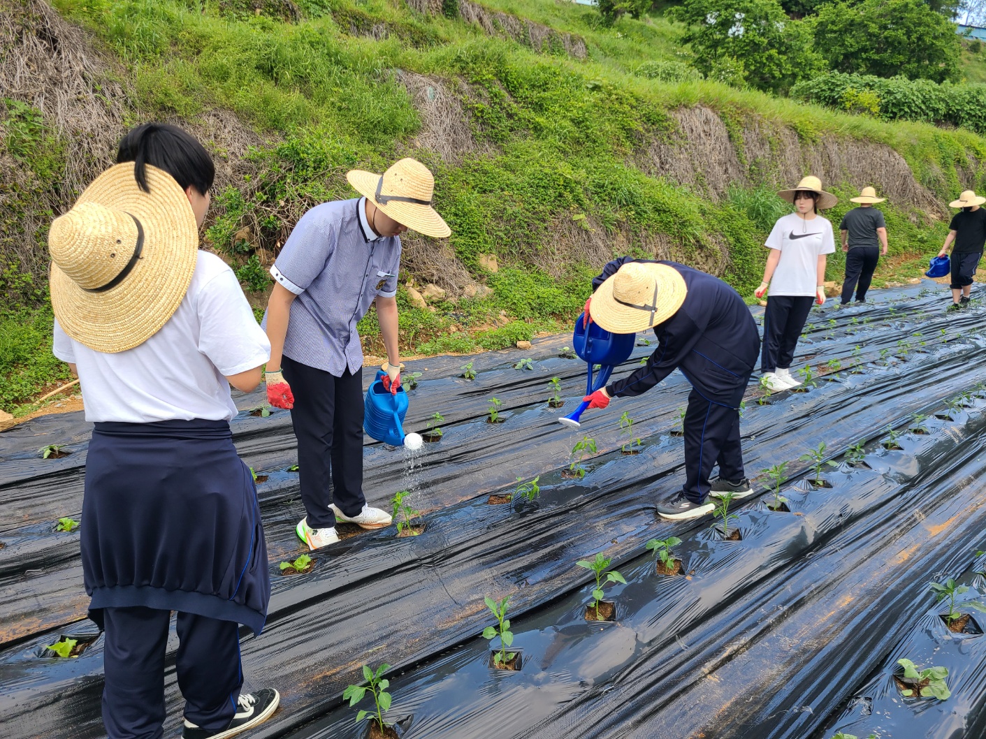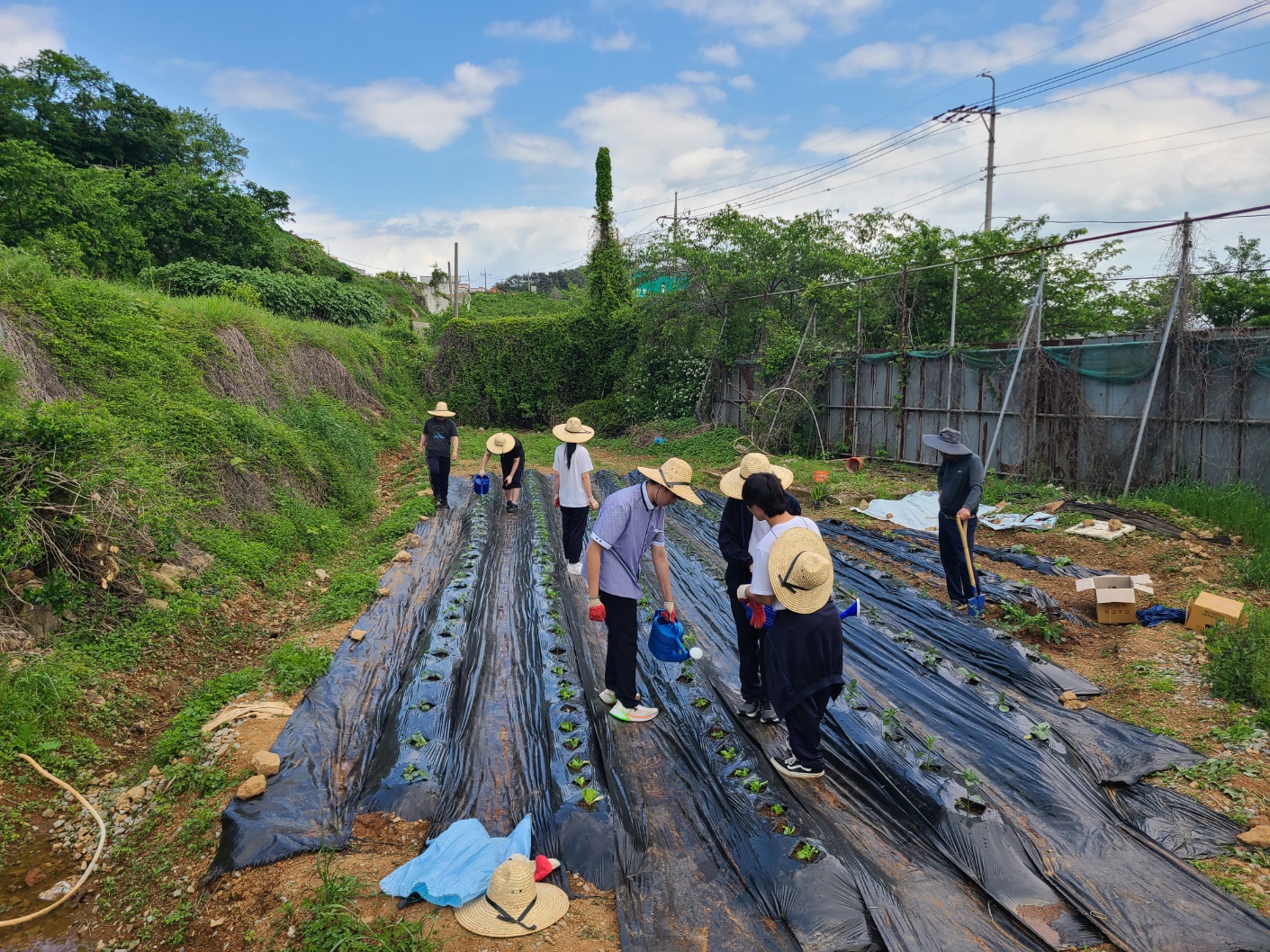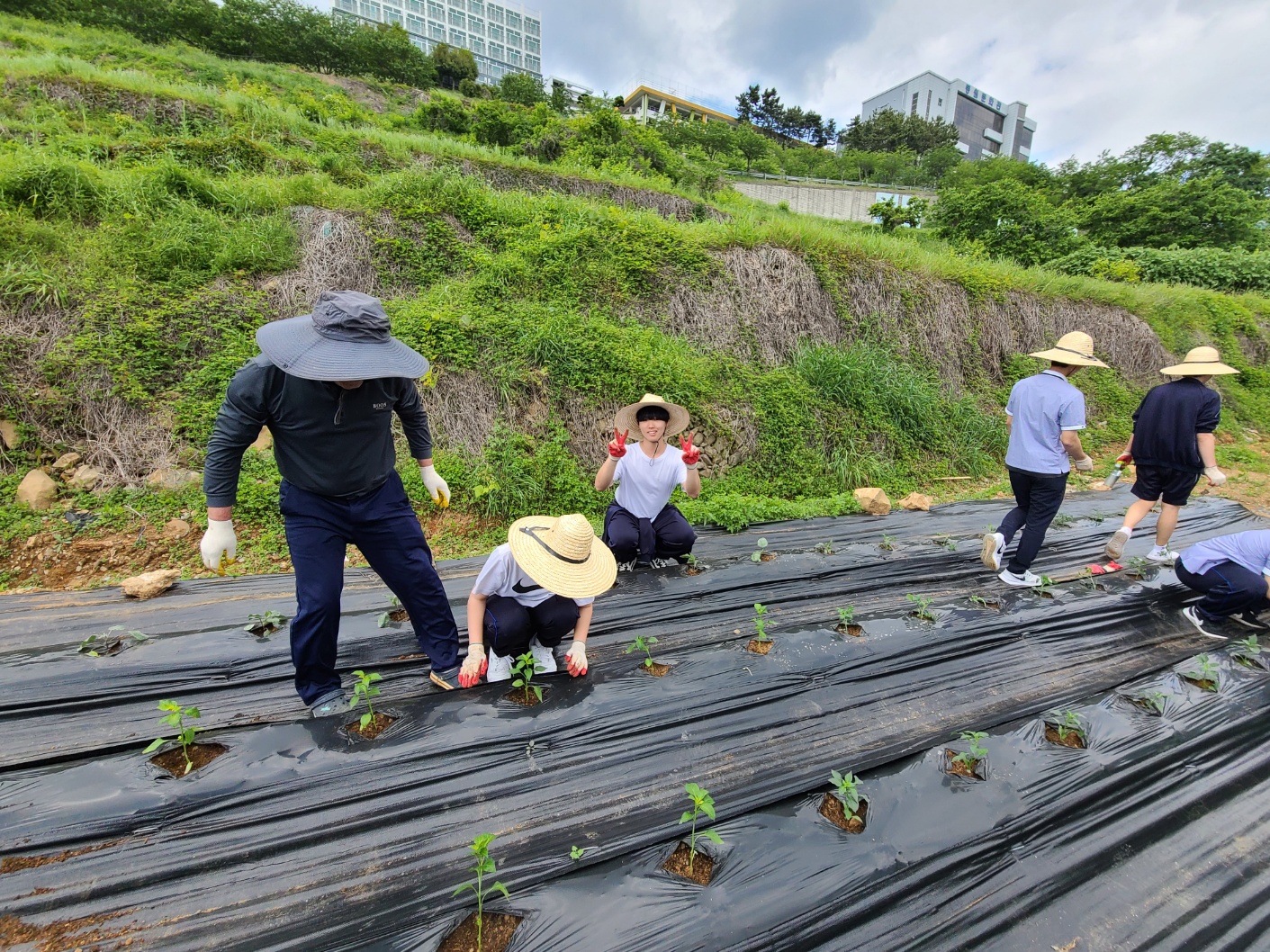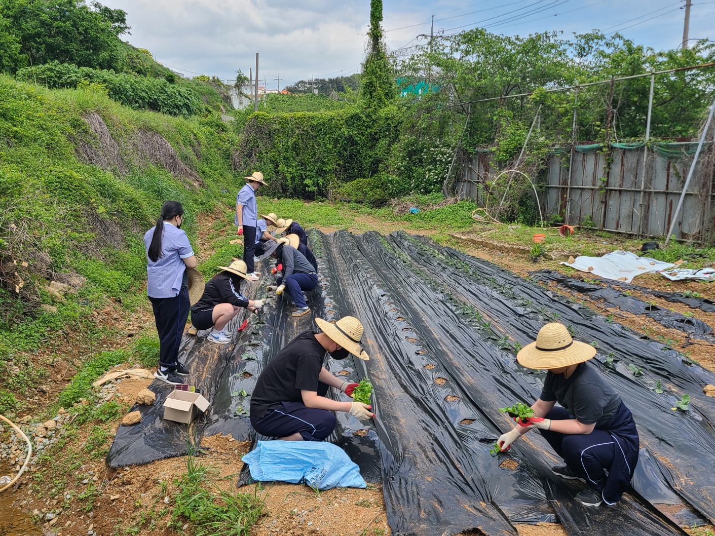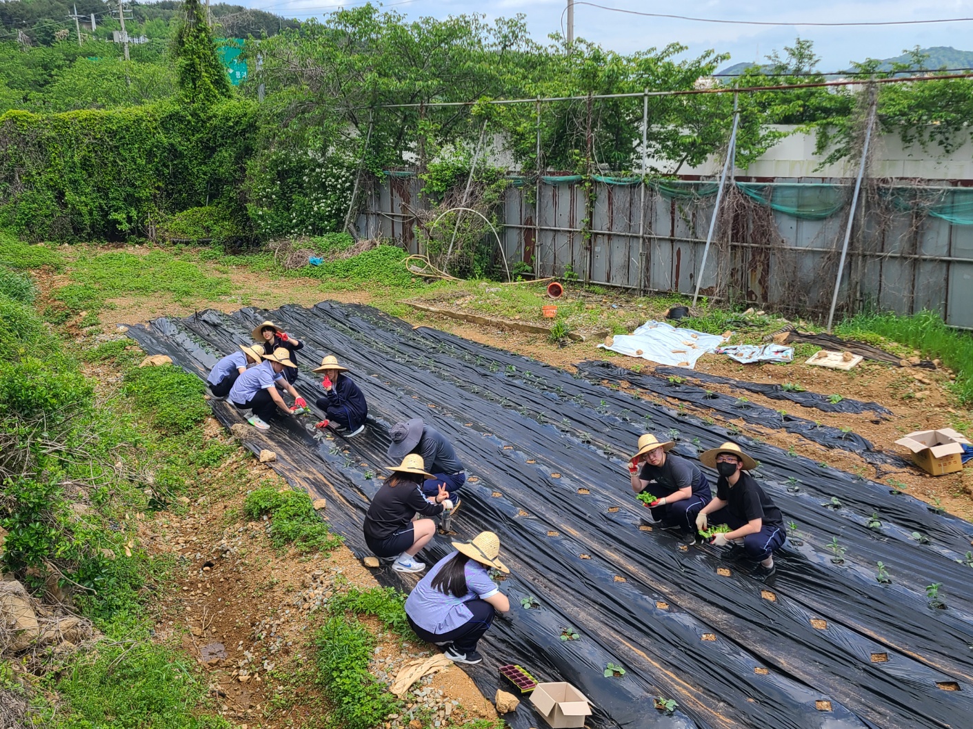 본교 4H 동아리 학생들은 본교 내 텃밭에서 고추, 가지, 방울 토마토, 양상추 등 텃밭 작품을 심었습니다. 학생들은 먼저 작품을 심는 방법을 주의 깊게 듣고, 정성스럽게 작물을 심었으며 마음 속으로 풍년을 기원하였습니다. 햇볕이 조금 뜨거운 날이었지만 학생들은 모두 열심히 모종 심기 활동에 참여했으며, 맡은 바 역할에 최선을 다하는 모습이 대견했습니다. 학생들은 텃밭 활동을 통해 땀의 소중함과 보람을 깨닫고, 식물의 생장 과정과 친환경 농업 등에 관해 탐구할 것입니다. 또한 올해 학생들은 텃밭 작물을 가꿔 농작물을 많이 수확하여, 이를 선생님과 친구들에게 판매하고 판매 수익금을 기부할 계획도 세웠습니다. 학생들이 텃밭 활동을 통해 스스로 문제를 해결하며 많은 것을 배우는 계기가 되기를 희망합니다.