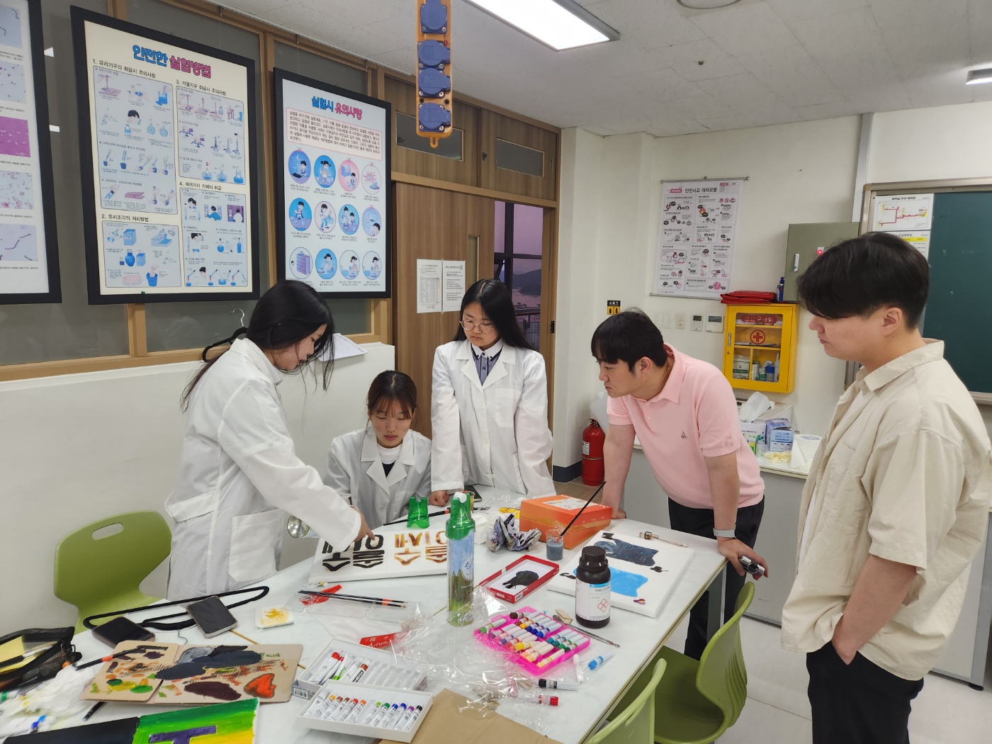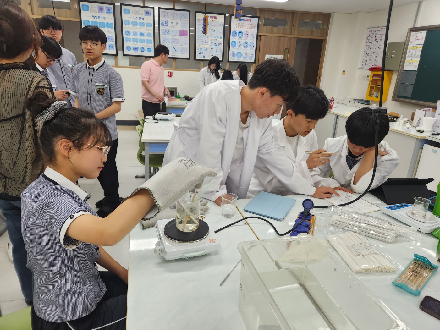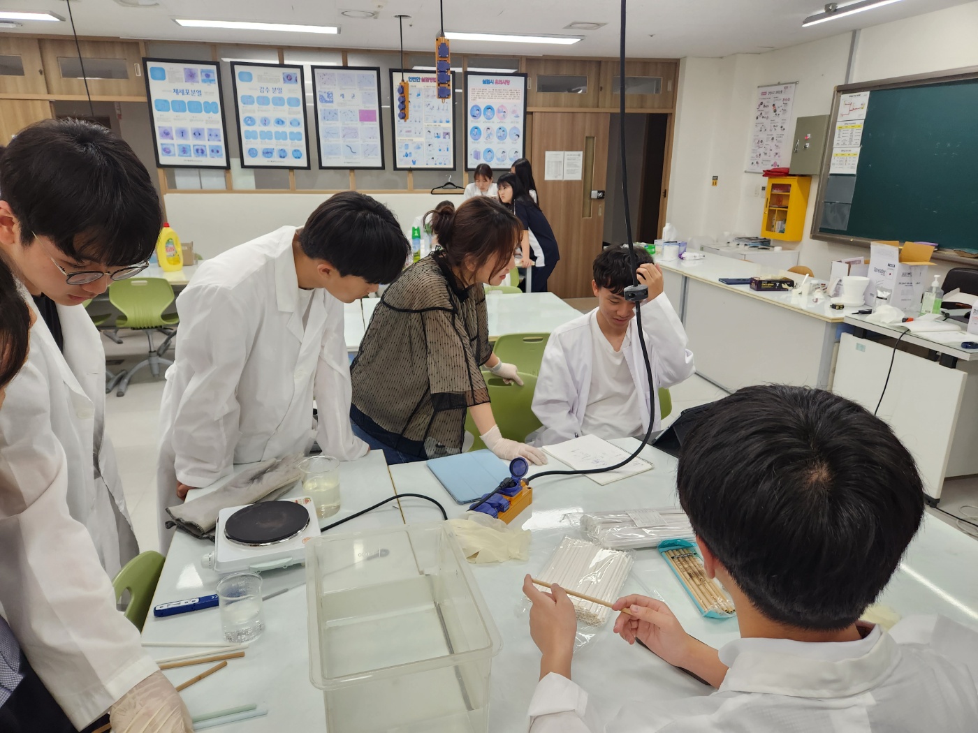 - 실험 안전 수칙을 설명하고 팀별로 실험 준비물과 실험 기구를 확인함