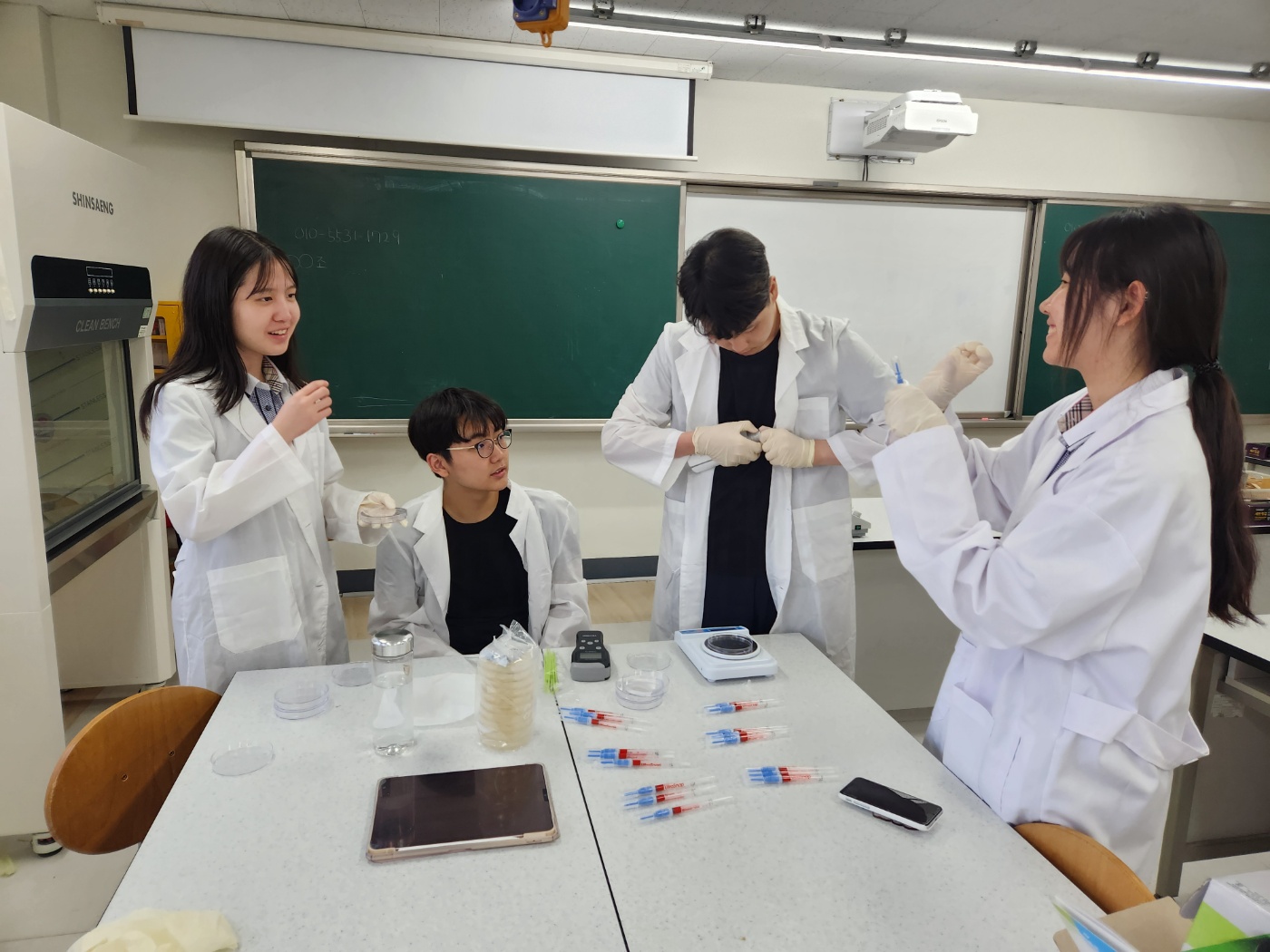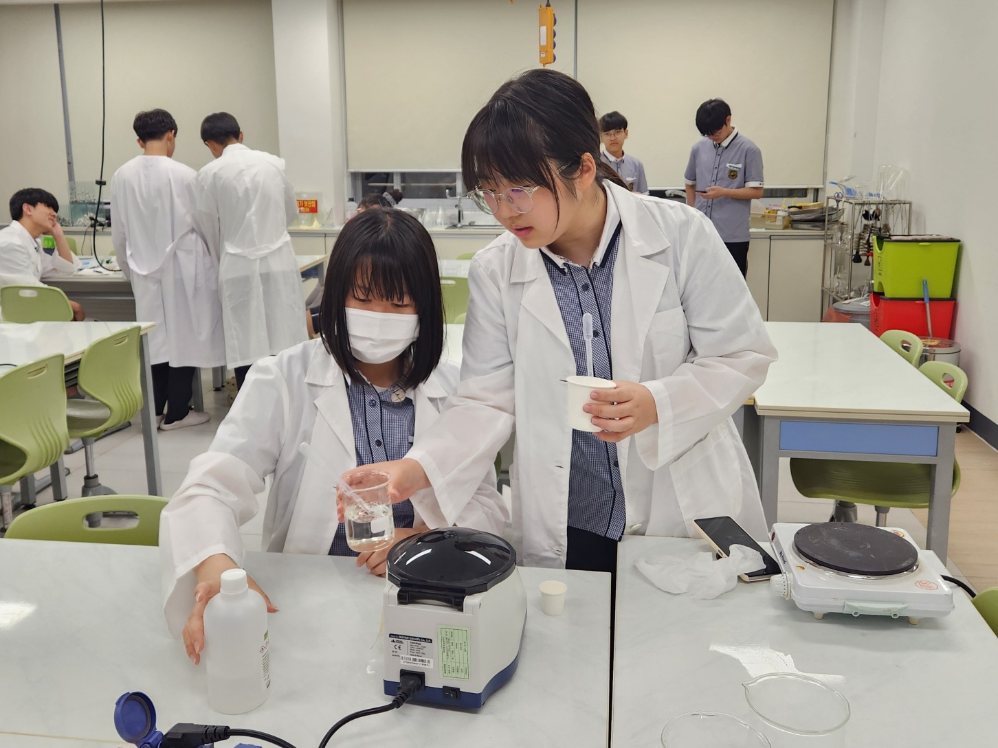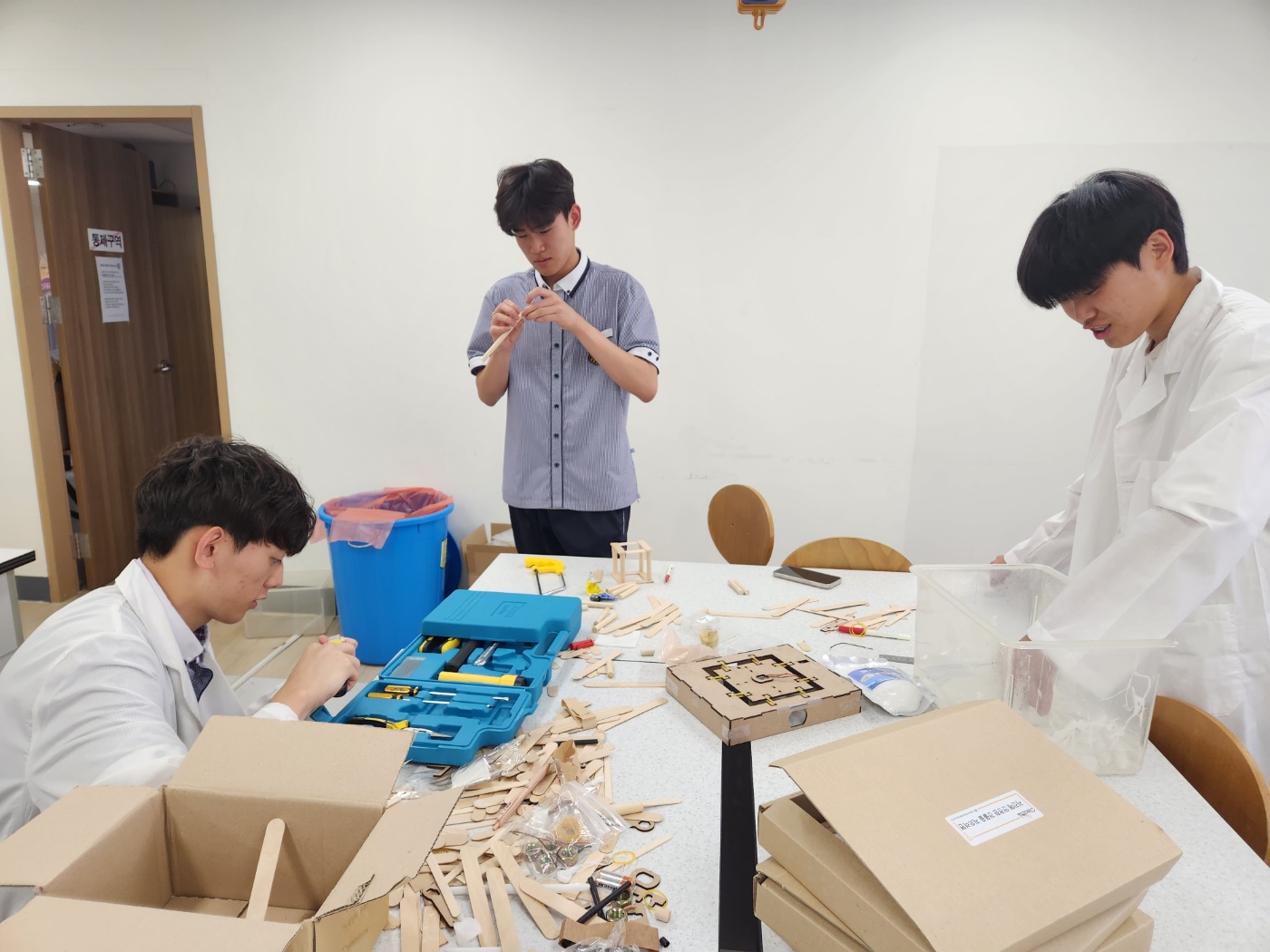 - 실험 안전 수칙을 설명하고 팀별로 실험 준비물과 실험 기구를 확인함