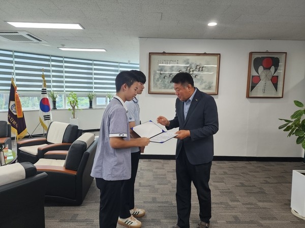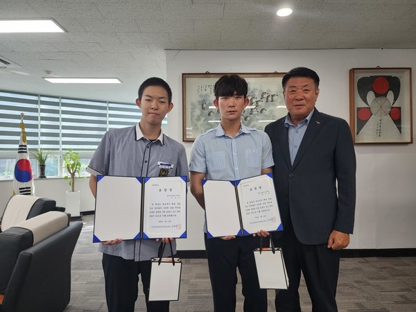 발빠른 신고와 인명구조로 물에 빠진 여성의 생명을 구하다통영교육지원청(교육장 김재수)은 지난 11일 죽림해안가 청소년상담복지센터부근 바닷가에서 물에 빠져 허우적대는 여성의 생명을 구한 통영고등학교 1학년 박지한, 동원고등학교 1학년 이진우 학생에게 교육장 표창을 수여하고 격려했다.
