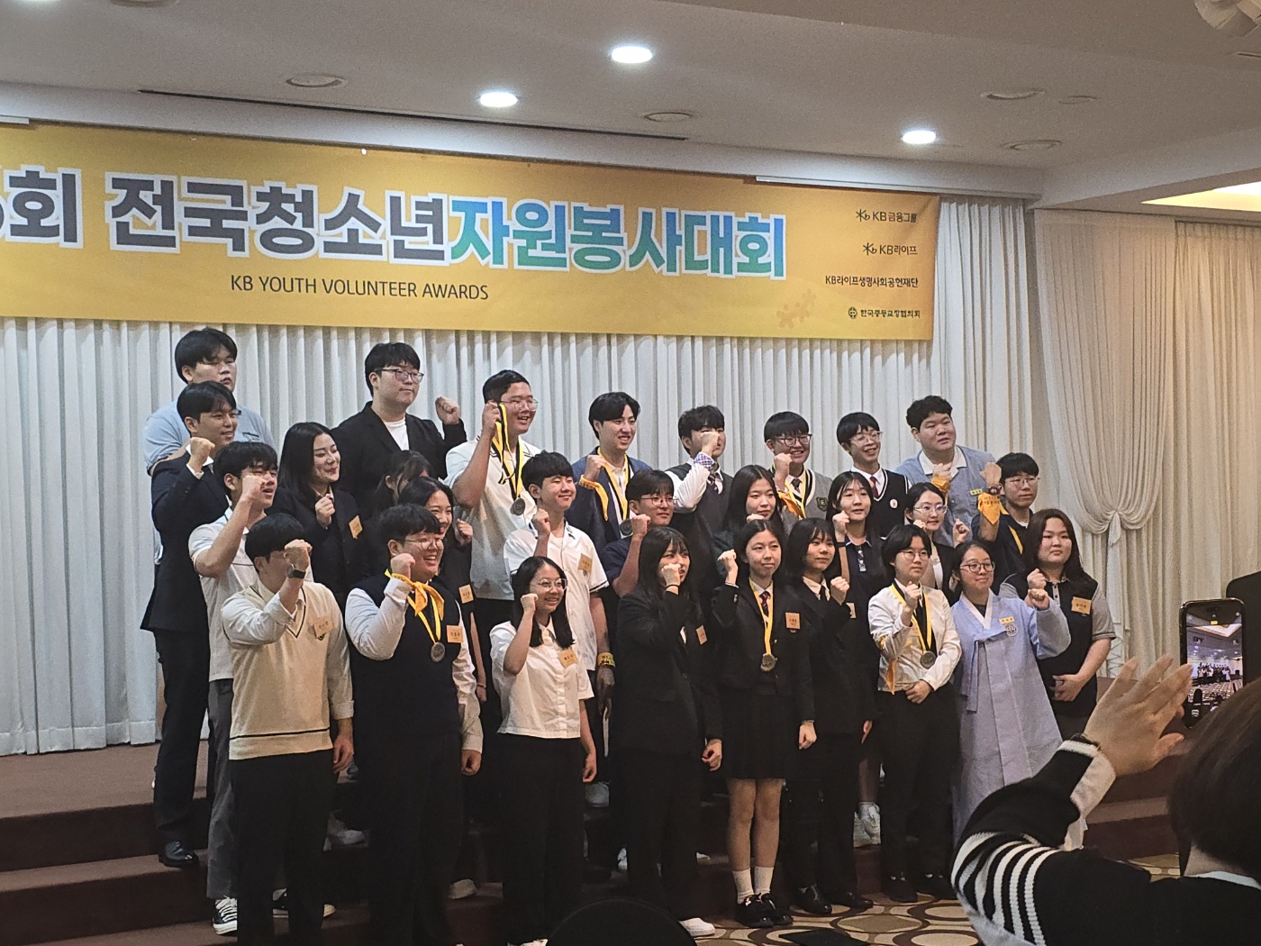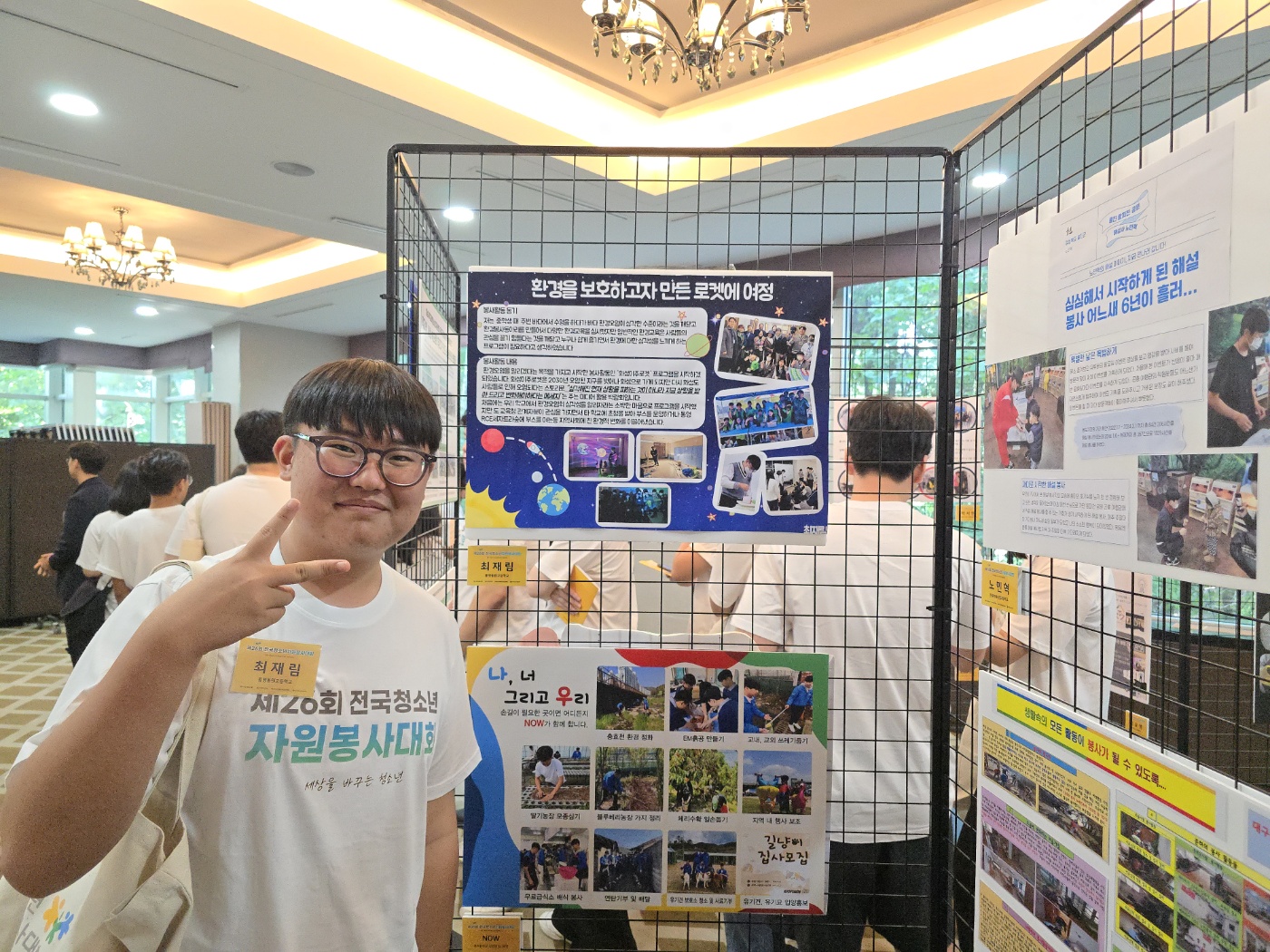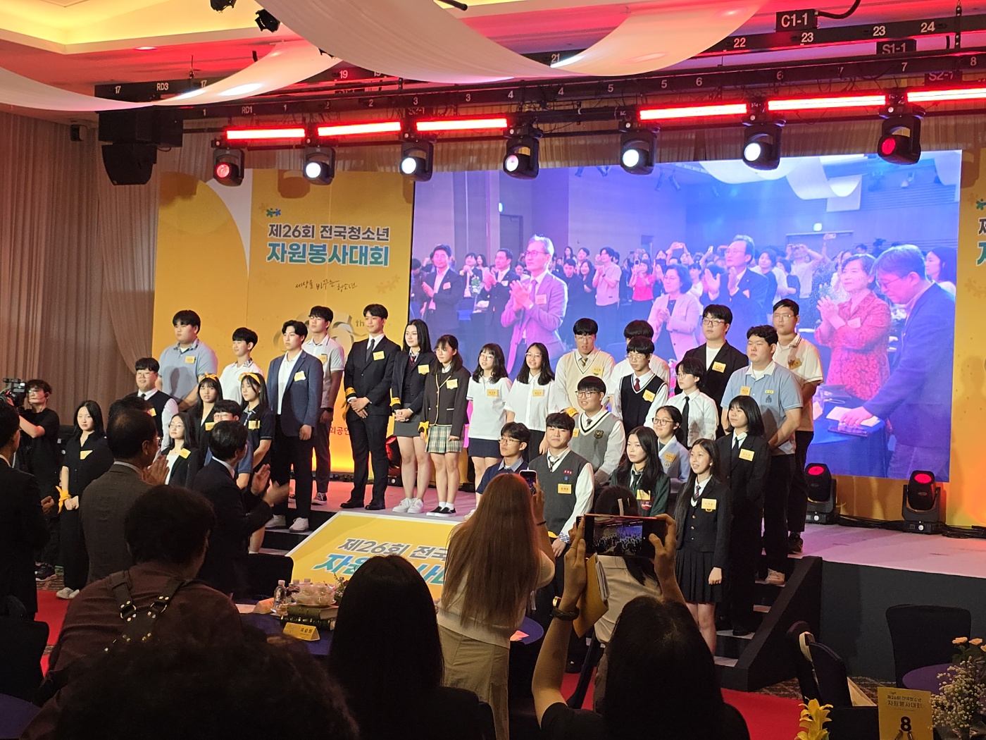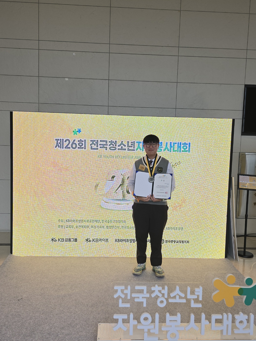 본교 3학년 최재림 학생이 지난 8일~9일 열린 전국자원봉사 대회에서 은상을 수상하는 영예를 안았습니다. 올해로 26회를 맞는 전국 자원 봉사 대회에는 총 510건, 1121명의 학생들이 응모하였으며, 3개월 간의 선발 과정을 거쳐 최종 30명 안에 들어 은상을 수상하였습니다. 은상 수상자들은 이날 서울 THE-K 호텔에 모여 1박2일 간의 프로그램을 수행하며 자신들의 봉사활동 사례를 공유하고 봉사활동으로 인한 성장 등의 이야기를 나누며 뜻 깊은 시간을 보냈습니다. 최재림 학생은 중학교 때부터 주말마다 자신의 손길이 필요한 곳에서 열심히 봉사활동을 하였으며, 특히 지역 바다의 오염이 심각하다는 생각으로 학생들의 인식을 개선하기 위해 지구 환경이 오염되어 모두 화성으로 이주하지만 화성 역시 오염 시킨다는 내용의 '화성이주로켓' 부스를 운영하여 많은 학생들에게 호응을 얻었습니다. 뿐만 아니라 부스의 우수성이 널리 알려져, 인근 초등학교와 세트트라 숲에서도 박람회를 열 정도로 지역 사회에도 좋은 영향을 끼치지도 하였습니다. 또한 이제는 학생이 조직한 동아리 후배들이 바통을 이어받아 어 좋은 부스를 만들어 학교 학생들에게 환경 보호와 실천의 중요성을 몸소 체험할 수 있도록 하고 있기도 합니다. 학생은 이날 은상 수상으로 받은 200만원으로 더 멋진 환경 보호 체험 부스를 만들어 졸업하기 전 마지막 불꽃을 태워보고 싶다고 말하고, 대학에 가거나 성인이 되어서도 어려운 사람들을 위한 봉사, 공익을 위한 캠페인 활동을 멈추지 않겠다고 말해 참석한 많은 사람들에게 박수를 받았습니다.