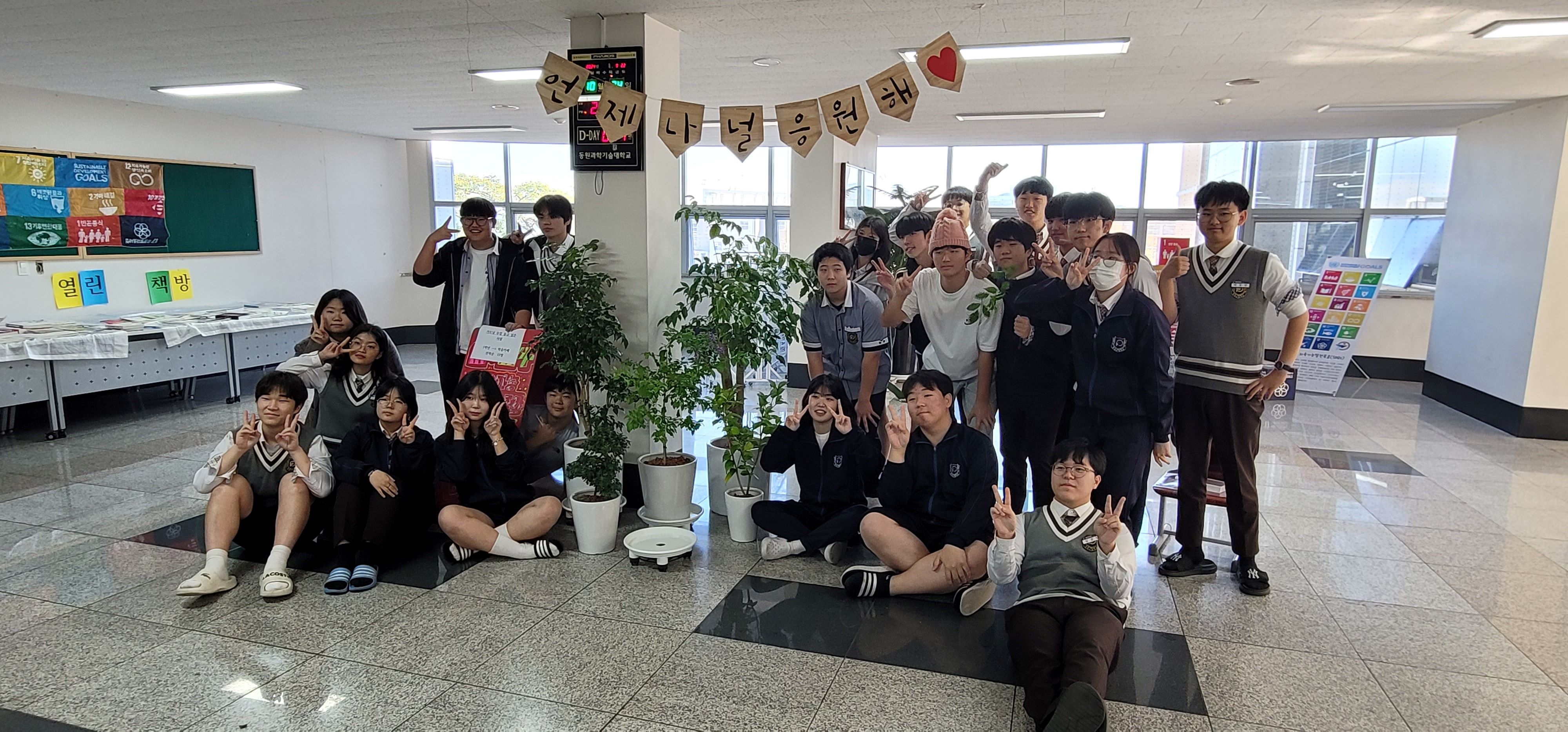 동원고등학교(교장 지창근)는 10월 21일(월)부터 25일(금)까지 1주일 동안 지속가능발전 교육주간 행사를 진행하였다. 동원고등학교는 유네스코 학교로 2019년부터 연 1회 유네스코 주간을 진행해 왔으며 2022년에 지속가능발전 교육주간으로 명칭을 변경해서 올해까지 이어지고 있다. 올해는 누구도 소외됨이 없자는 의미로 ‘Leave No One Behind’로 주제를 정하고 미래 사회의 주역이 될 학생들이 평등, 평화, 자유, 정의 등의 가치를 깨닫고 지속가능한 미래를 이해하도록 한다는 목적 아래 학급 연대 프로그램과 개인 참여 프로그램을 운영하였다. 빈그릇 운동, 에너지 절약을 위한 교실 소등 캠페인, 학급 평화 사진전, 아나바다 길마켓, 지속가능한 팝업 퀴즈, 기후 행동 1.5℃앱 스쿨 챌린지로 이루어진 학급 연대 프로그램을 통해 서로 협력하면서 타인을 공감하고 갈등을 해결할 뿐만 아니라 나와 다름이 틀림이 아님을 받아들이며 포용과 다양성을 배울 수 있었다. 또한 Plastic Zero 플래시몹, 교육의 미래를 위한 걷기 캠페인, 모두에게 열린 책방, 사계절 탄소 먹는 동백이, 일회용품 없는 상점, 학생 주도형 부스 운영, 교사 애장품 판매, 21% 파티, 충렬여고와 함께하는 환경정화 및 탐조활동 등으로 구성된 개인 참여 프로그램을 통해 스스로 생각해 볼 기회를 가지고 배운 것을 삶 속에 녹아내는 실천력을 키울 수 있었다. 그리고 학생들의 올바른 언어 사용 습관을 함양하고자 학생회와 연계하여 언어 순화 프로젝트를 동시에 진행하였다. 5일 동안 세계 시청각 유산, 아나바다 장터, 교사 애장품 판매, 점자 키링 제작 부스를 운영한 학생은 “월요일과 화요일에는 80년대부터 2000년대까지 뉴스, 신문 기사, 노래, 다큐멘타리 등의 시청각 자료를 당시의 사회 분위기와 함께 설명한 후 노래 맞추기나 옛날 유행어를 활용하여 문장 만들기 체험을 진행했어요. 수요일에는 아나바다 장터와 교사 애장품 판매를 담당했는데 선생님들의 물건이어서 그런지 친구들이 많은 관심을 가지고 참여했어요. 특히 예상 가격을 맞추는 게임이어서 더 많이 참여했어요. 점자 키링 제작은 학생들이 원하는 문구를 직접 점자로 새겨서 키링을 제작하는 의미 있는 경험이었어요. 2년 연속으로 참여하고 있는데 올해는 작년보다 점자나 옛날 다큐 등 사회 문제를 다루다보니 더 많은 이야기를 알릴 수 있었어요. 올해 경험을 활용해서 더 좋은 부스나 콘텐츠를 계획하는 데 많은 영감을 얻을 수 있었어요.”라고 소감을 전했다.