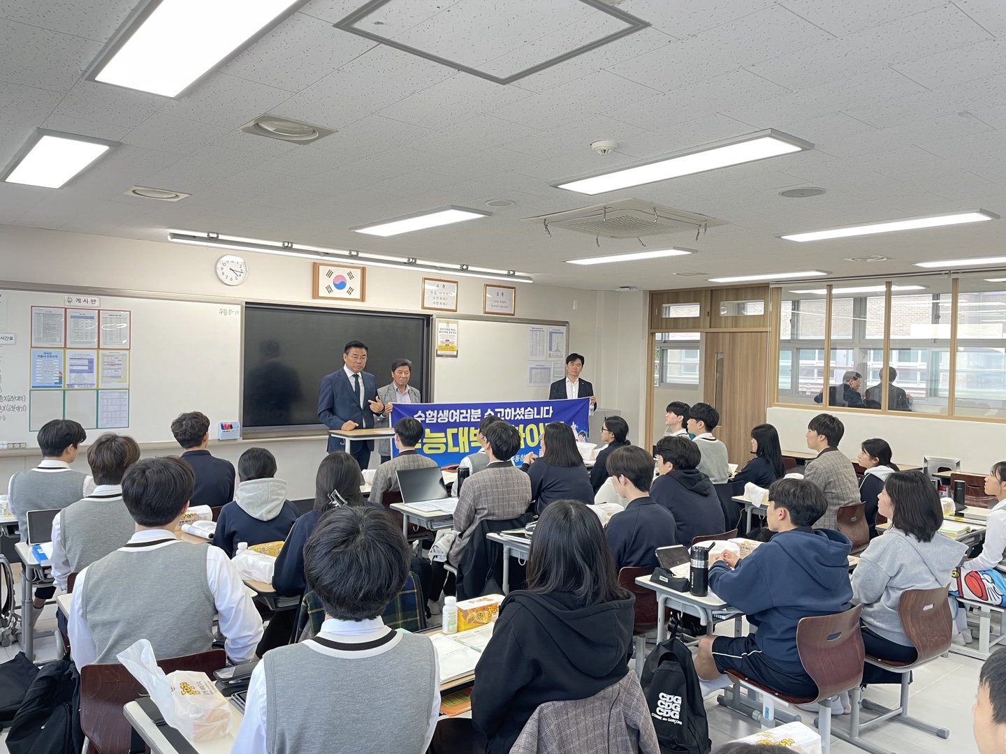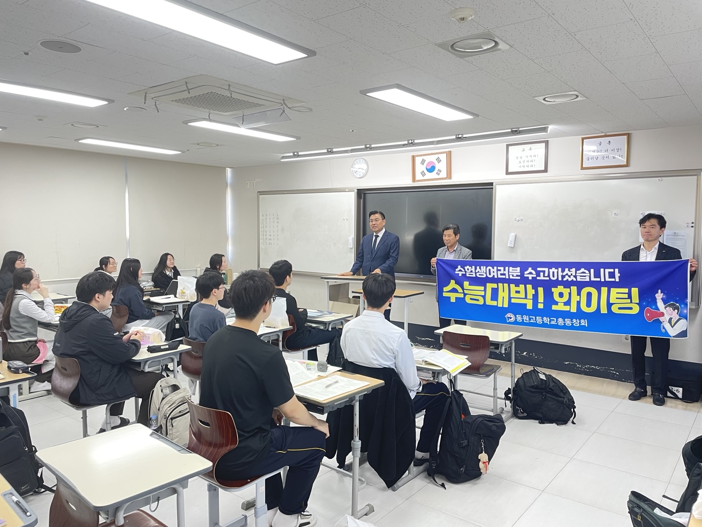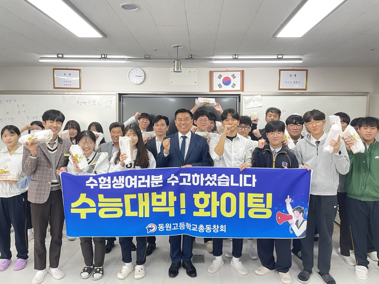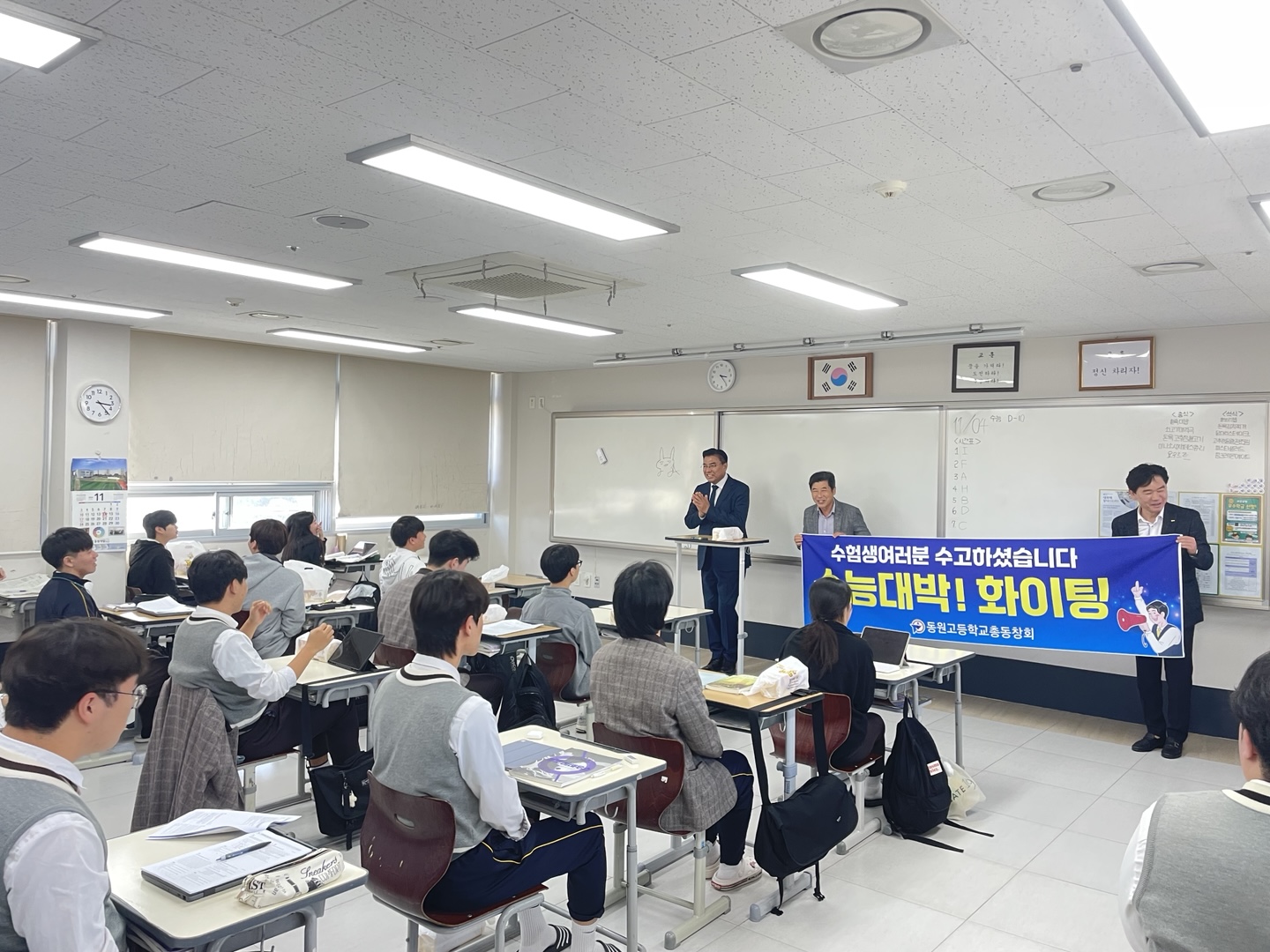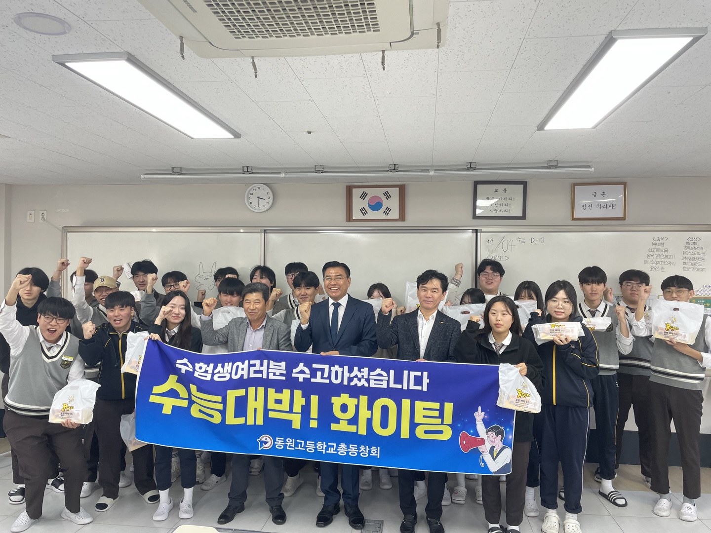 2024년 11월 4일(월) 동원고등학교 총동창회에서 대학수학능력시험을 앞둔 모교 후배들을 응원하기 위해 방문하였습니다.