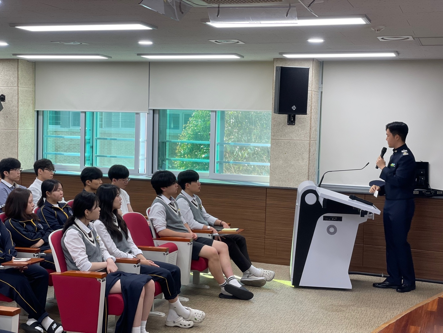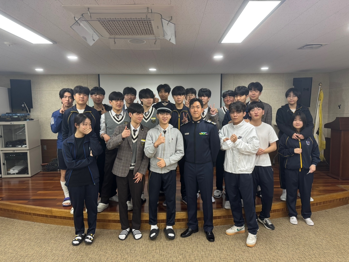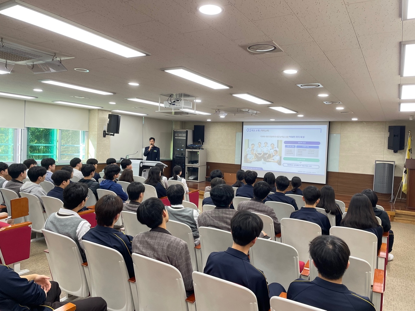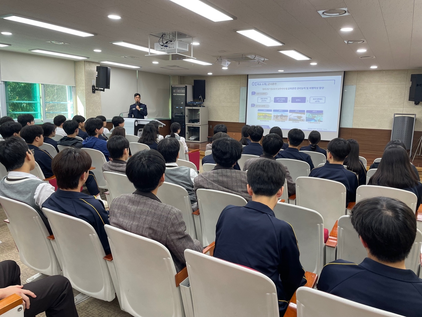 2023년 본교 졸업생이자 현재 공군사관학교에 재학 중인 김규민 생도가 본교를 방문하여, 사관학교 진학을 꿈꾸는 후배들을 대상으로 뜻깊은 멘토링 시간을 가졌다. 이날 김 생도는 자신의 입시 준비 과정과 사관학교 생활에 대해 솔직하게 들려주며, 진로 설계에 대한 실질적인 조언을 아끼지 않았다. 특히 1, 2학년 학생 60명을 대상으로 진행된 이번 멘토링은 생기부 작성, 내신 관리법 등 구체적인 학습 전략부터 동기부여에 이르기까지 다양한 내용을 다루며 학생들의 큰 관심을 끌었다. 참석한 학생들은 “선배의 현실적인 조언이 진로 선택에 큰 도움이 되었다”, “직접 경험한 이야기를 들을 수 있어 훨씬 와닿았다”고 입을 모았다. 한편 김규민 생도는 공군사관학교 외에도 KAIST와 고려대학교 건축사회환경공학부에 동시 합격하며 학업 능력과 진로 역량을 모두 인정받은 바 있다. 이번 멘토링은 후배들에게 실질적인 진로 정보를 제공함과 동시에, 본교의 자랑스러운 동문과의 뜻깊은 교류의 장이 되었다.