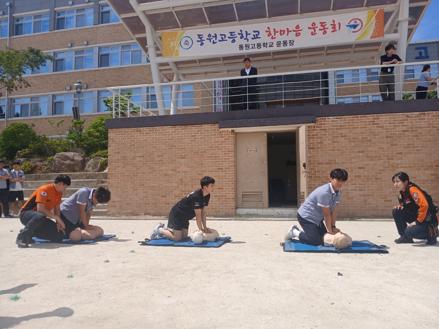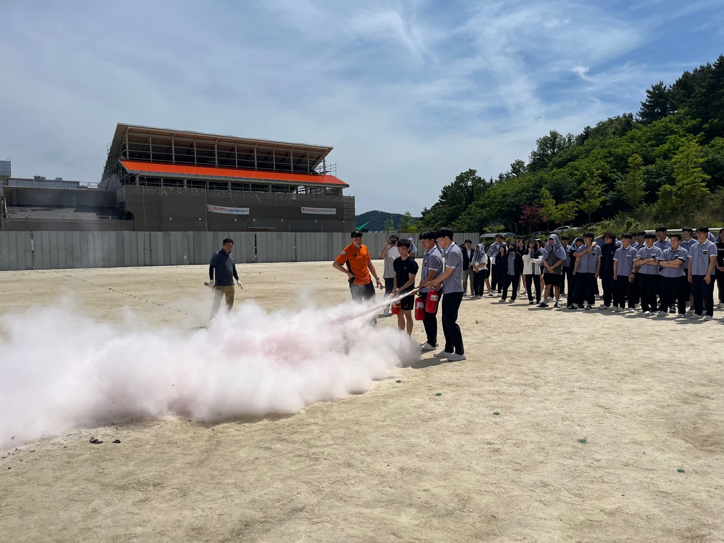 2025년 6월 11일 수요일 14시 특정소방대상물 소방합동훈련을 실시하였습니다. 죽림119안전센터와 함께한 훈련으로 재난 발생에 대비한 대피절차 및 행동 요령을 숙달하고,재난 대피 훈련을 하여 재난에 대한 안전의식을 제고하며, 분말소화기 사용법과 CPR 방법을 숙지하는 기회가 되었습니다.