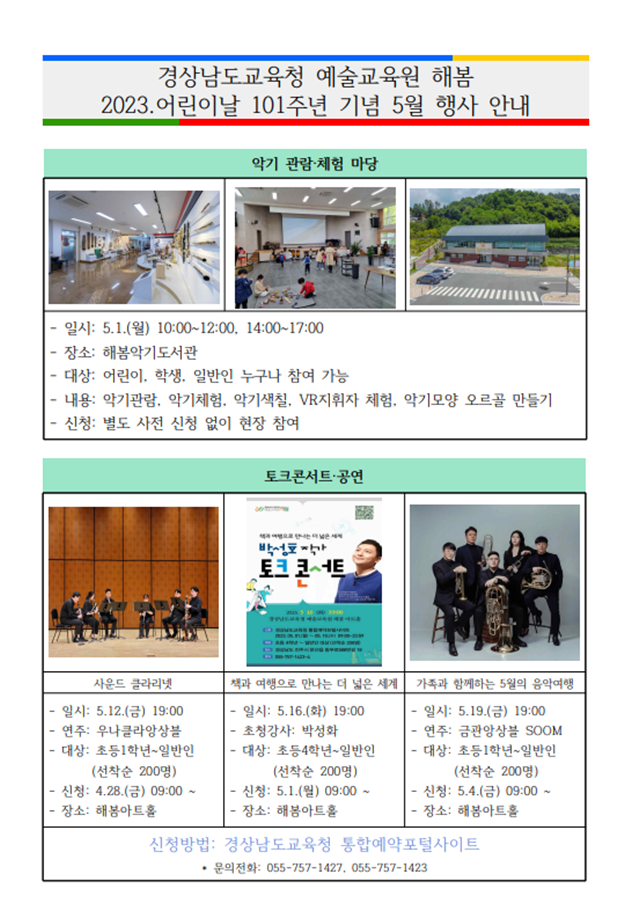 2023. 경상남도교육청예술교육원해봄 어린이날 101주년 기념 5월행사 안내