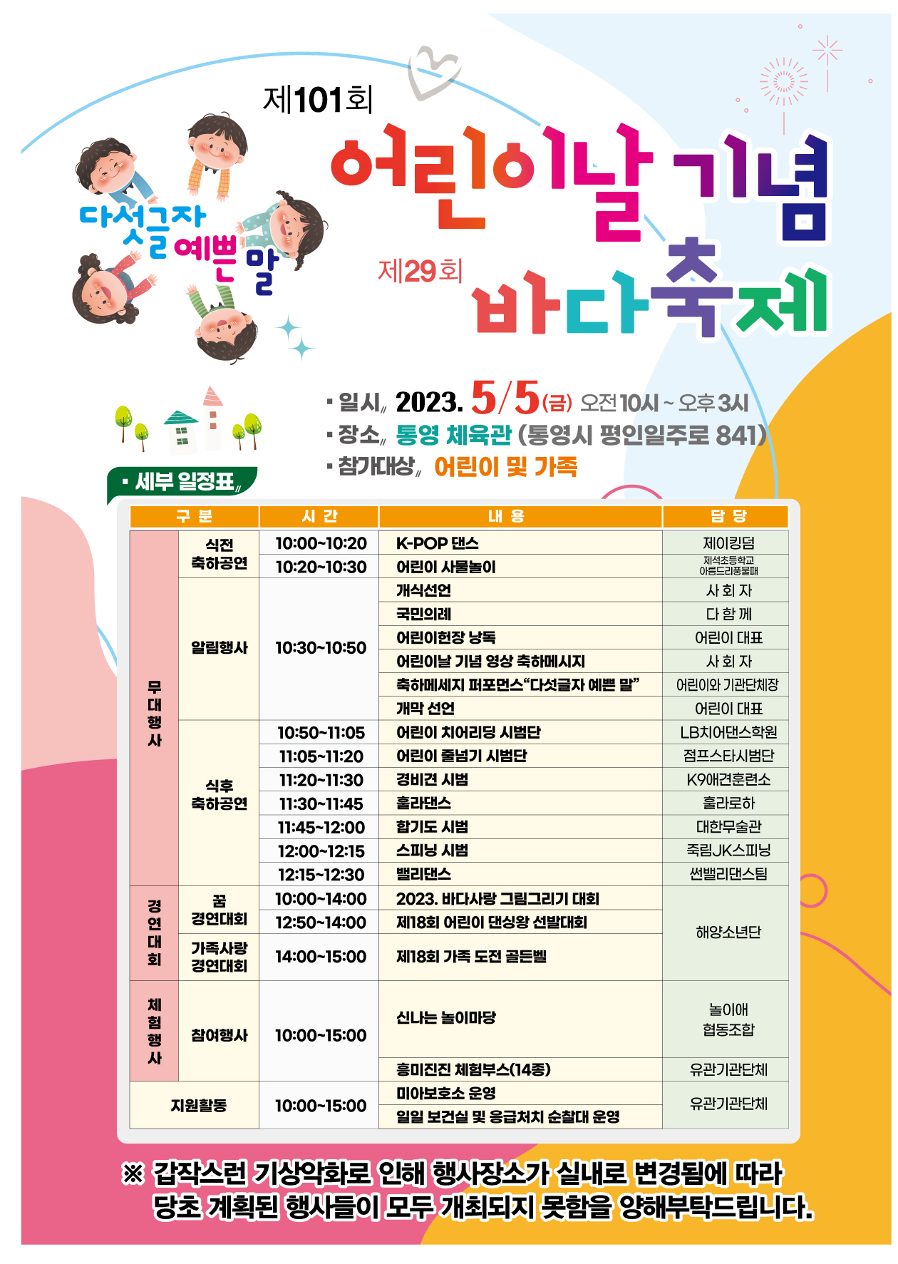 제101회 어린이날 기념 행사 개최 안내