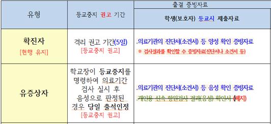 ○ 코로나19 등교중지 기준 및 출결 관리 변경사항(23.9.1.이후)