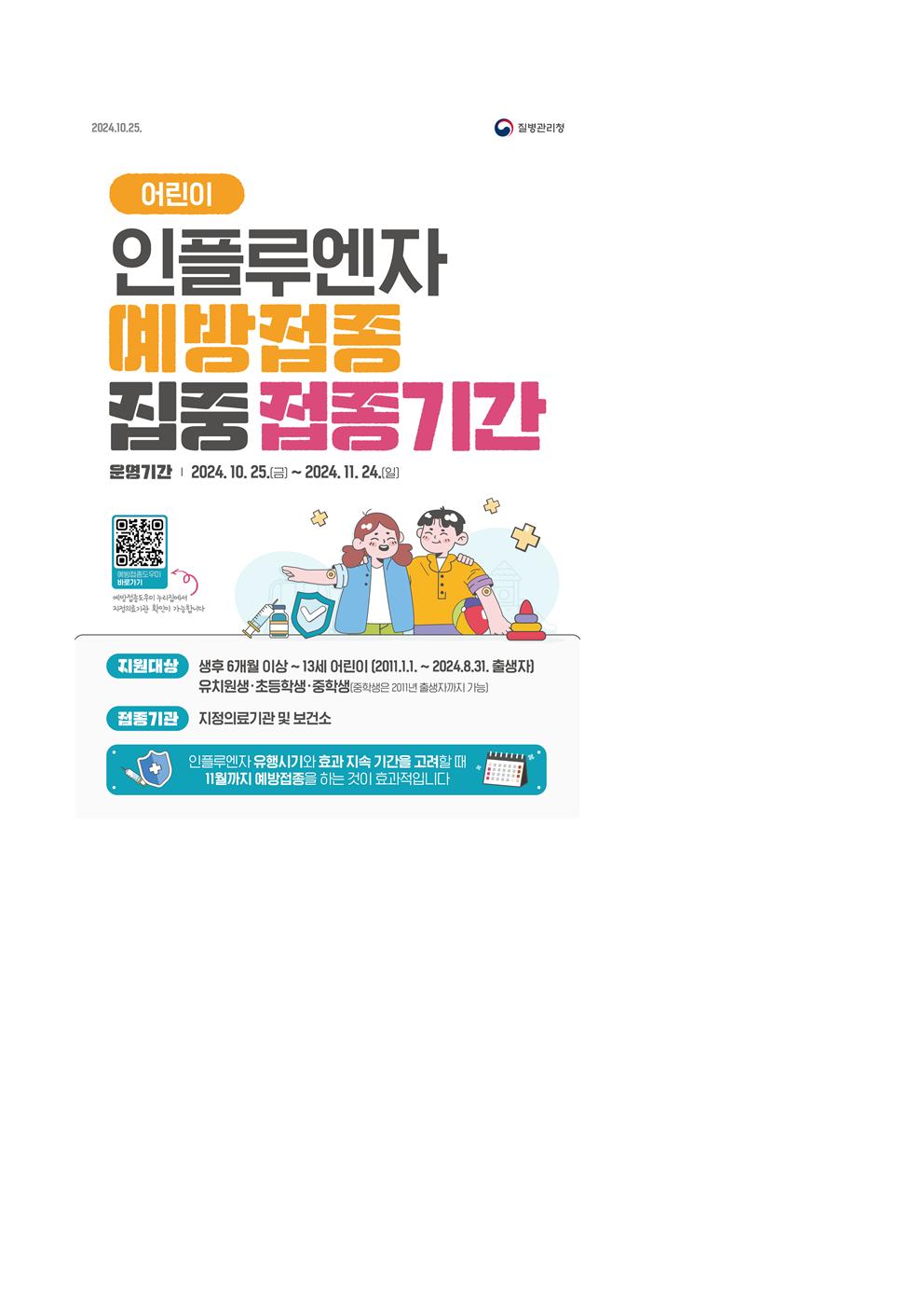 어린이 인플루엔자 예방접종 집중 접종기간 운영 안내