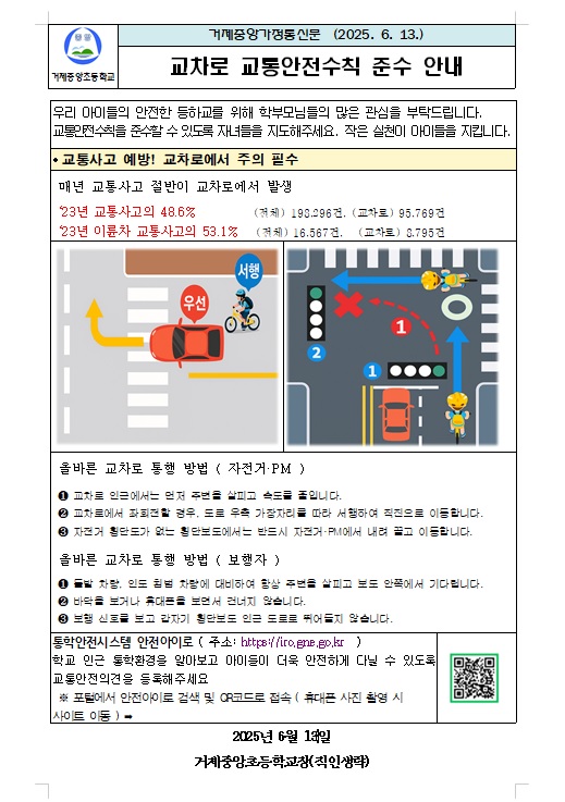 교차로 교통안전수칙 준수 안내(가정통신문).hwp