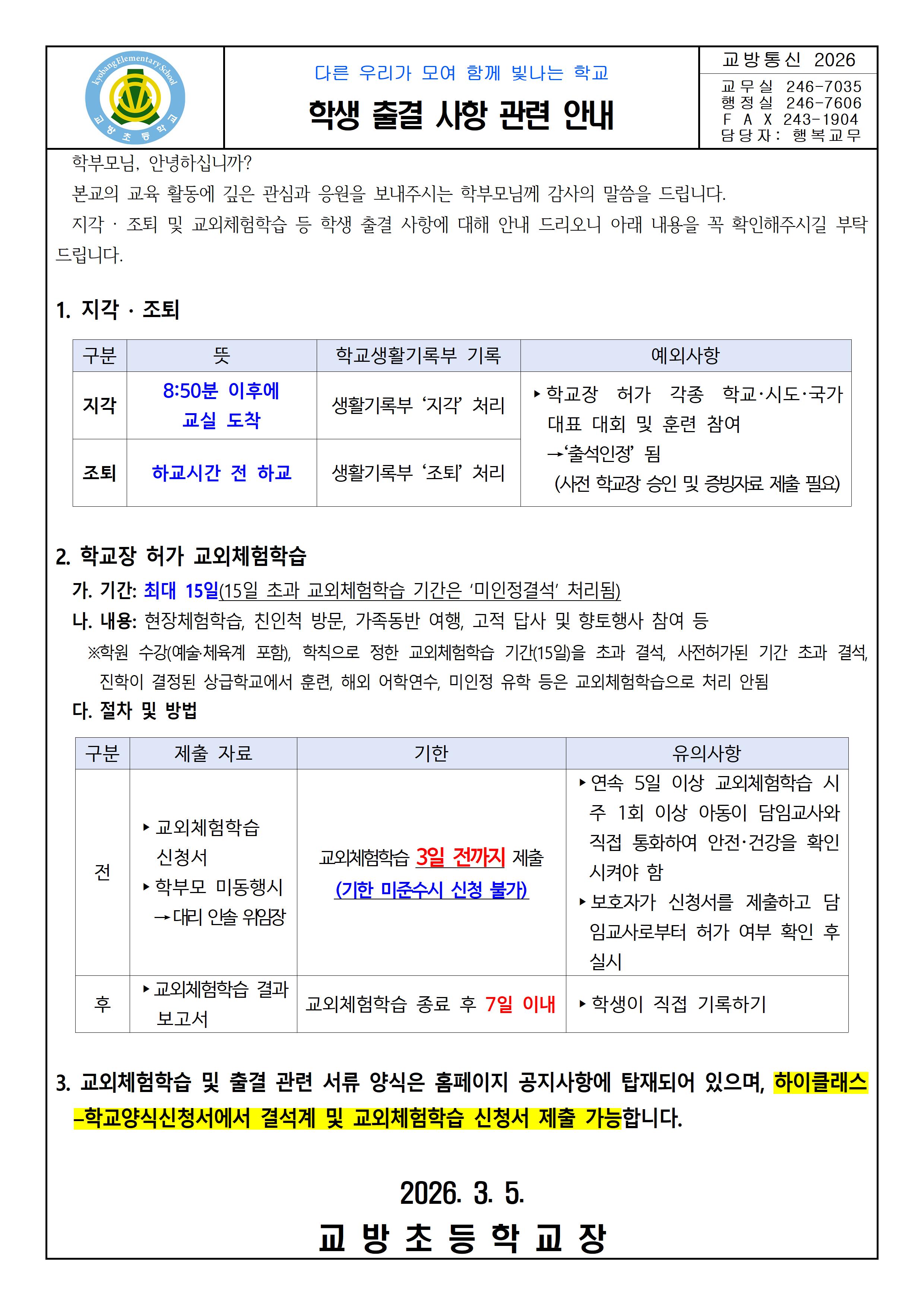 2026학년도 출석 관련 서류, 학생 국외여행(체험) 신고서 양식