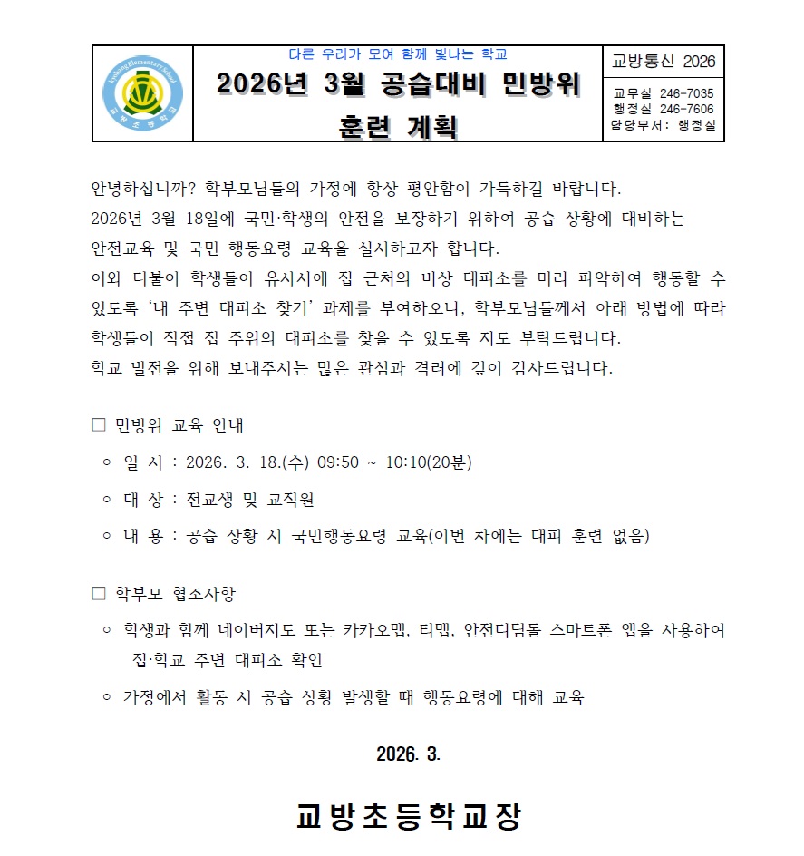 2026년 3월 공습대비 민방위 훈련 계획 가정통신문.pdf