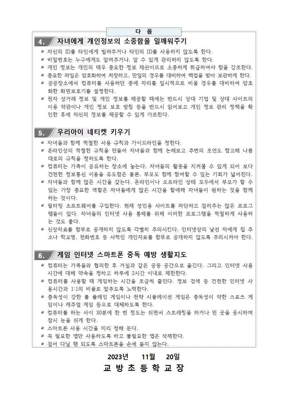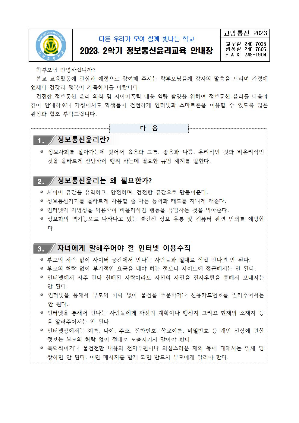 2023. 2학기 정보통신윤리교육 안내장