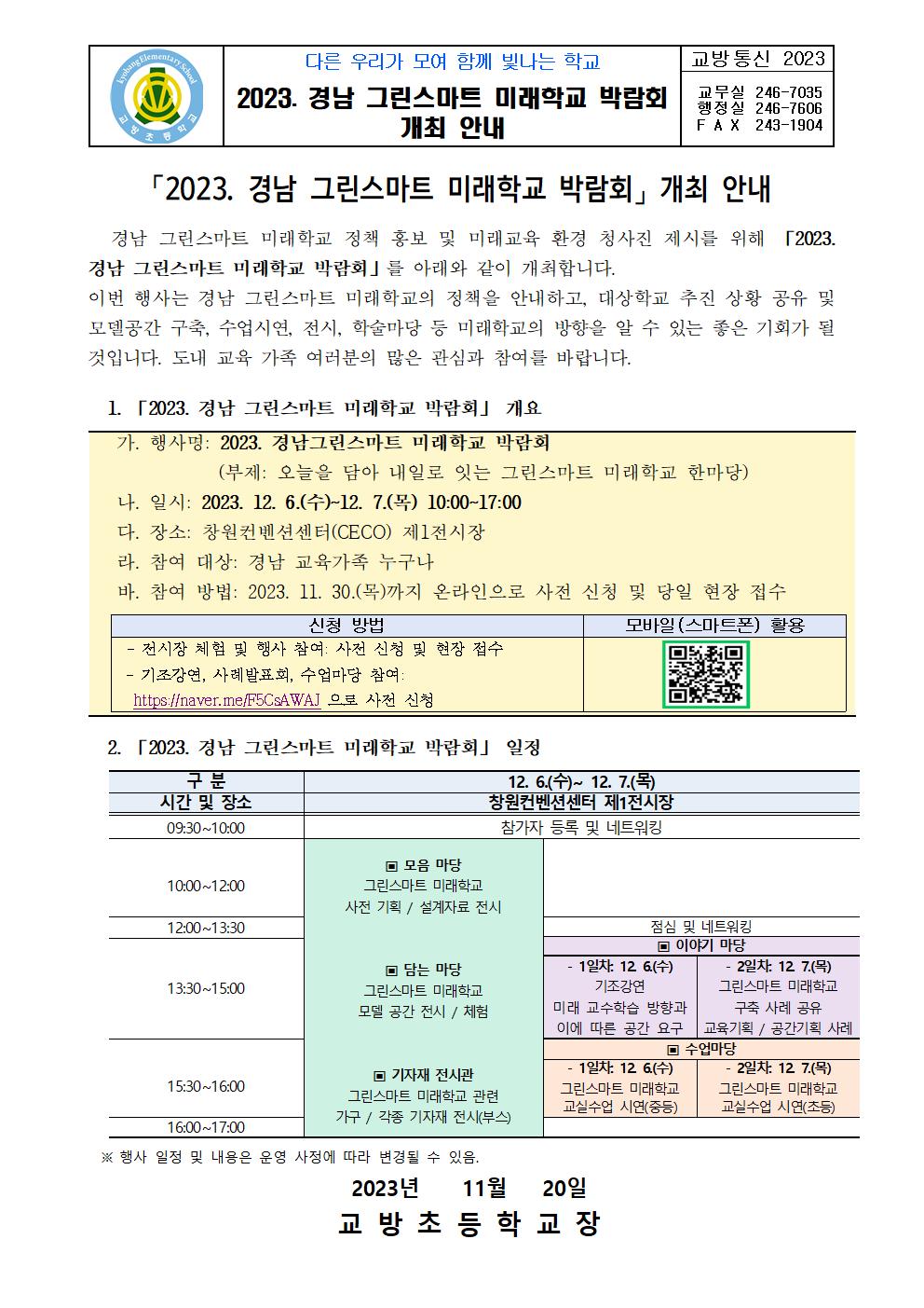 2023. 경남 그린스마트 미래학교 박람회 개최 안내.pdf