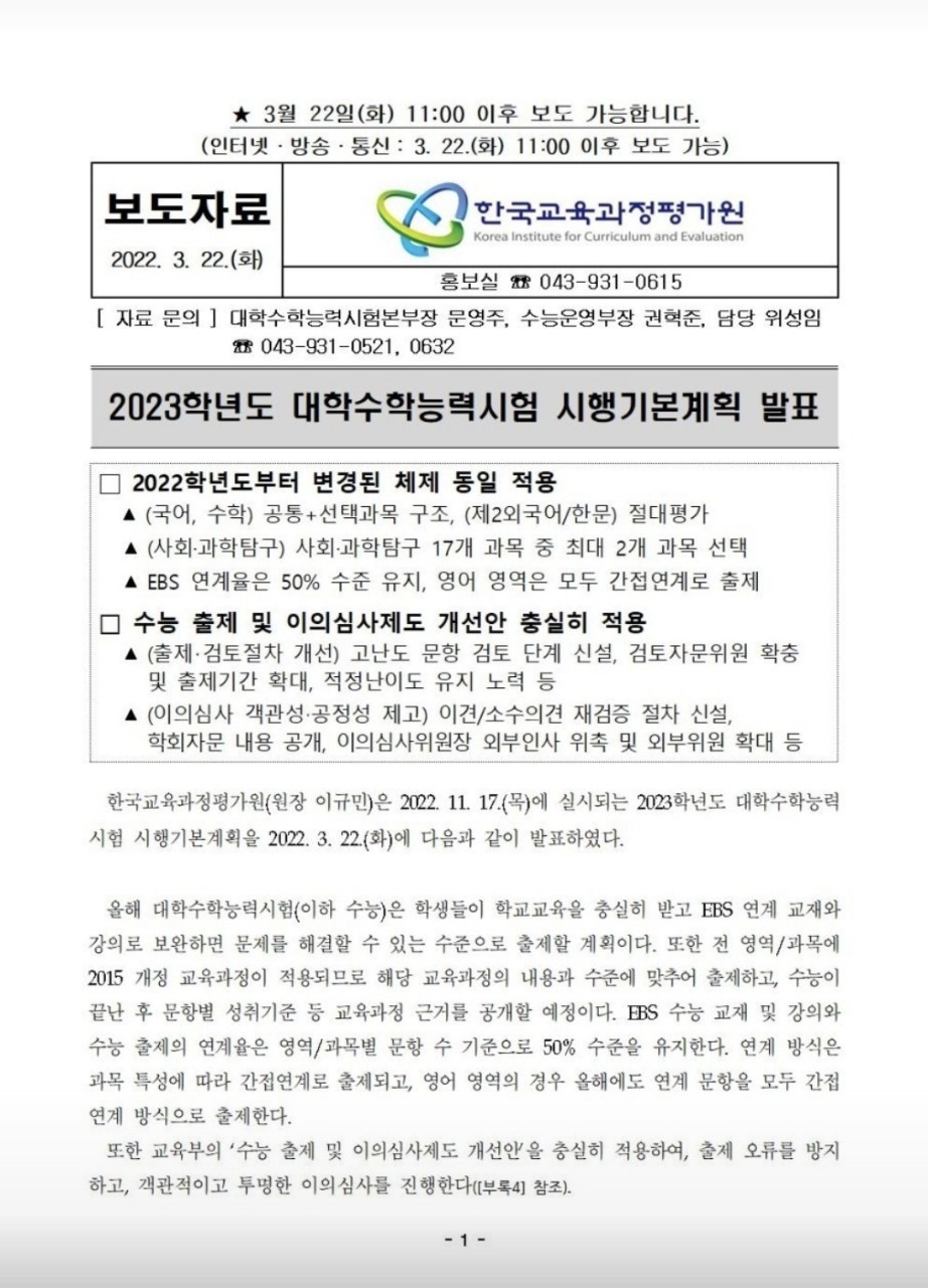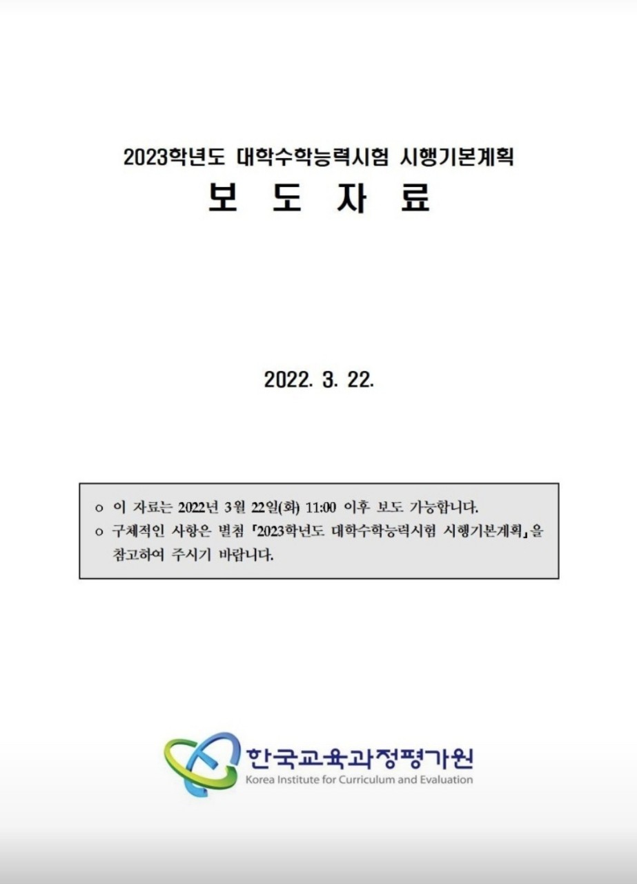 2023학년도 대학수학능력시험 기본계획이 발표되었습니다. 작년과 변화없이 진행될 예정입니다.