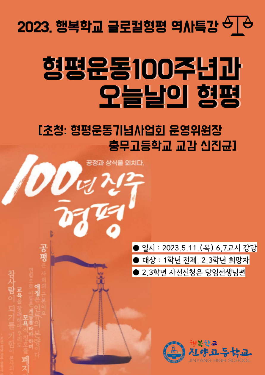 2023.글로컬형평 역사특강 '형평100주년과 오늘날의 형평' 안내 홍보(5/11)