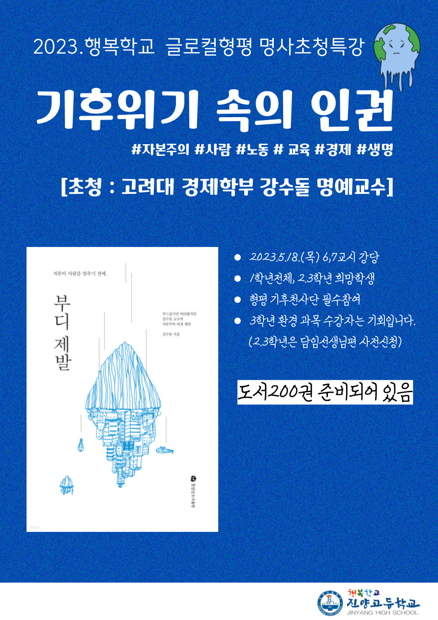 2023. 글로컬형평 '기후위기 속의 인권' 명사초청특강 안내홍보(5/18)