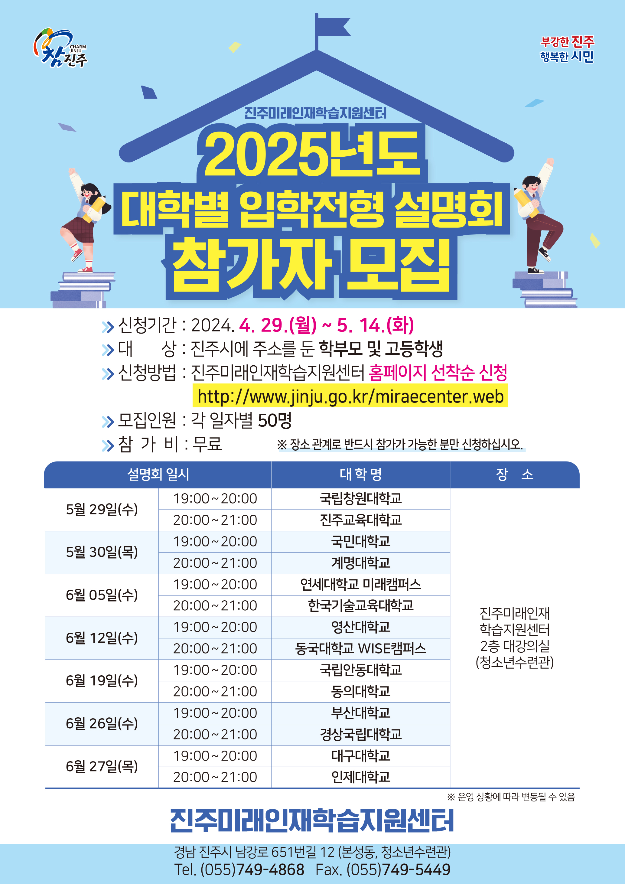 진주미래인재센터 2025학년도 대학별 입학전형 설명회 참가자 모집 홍보