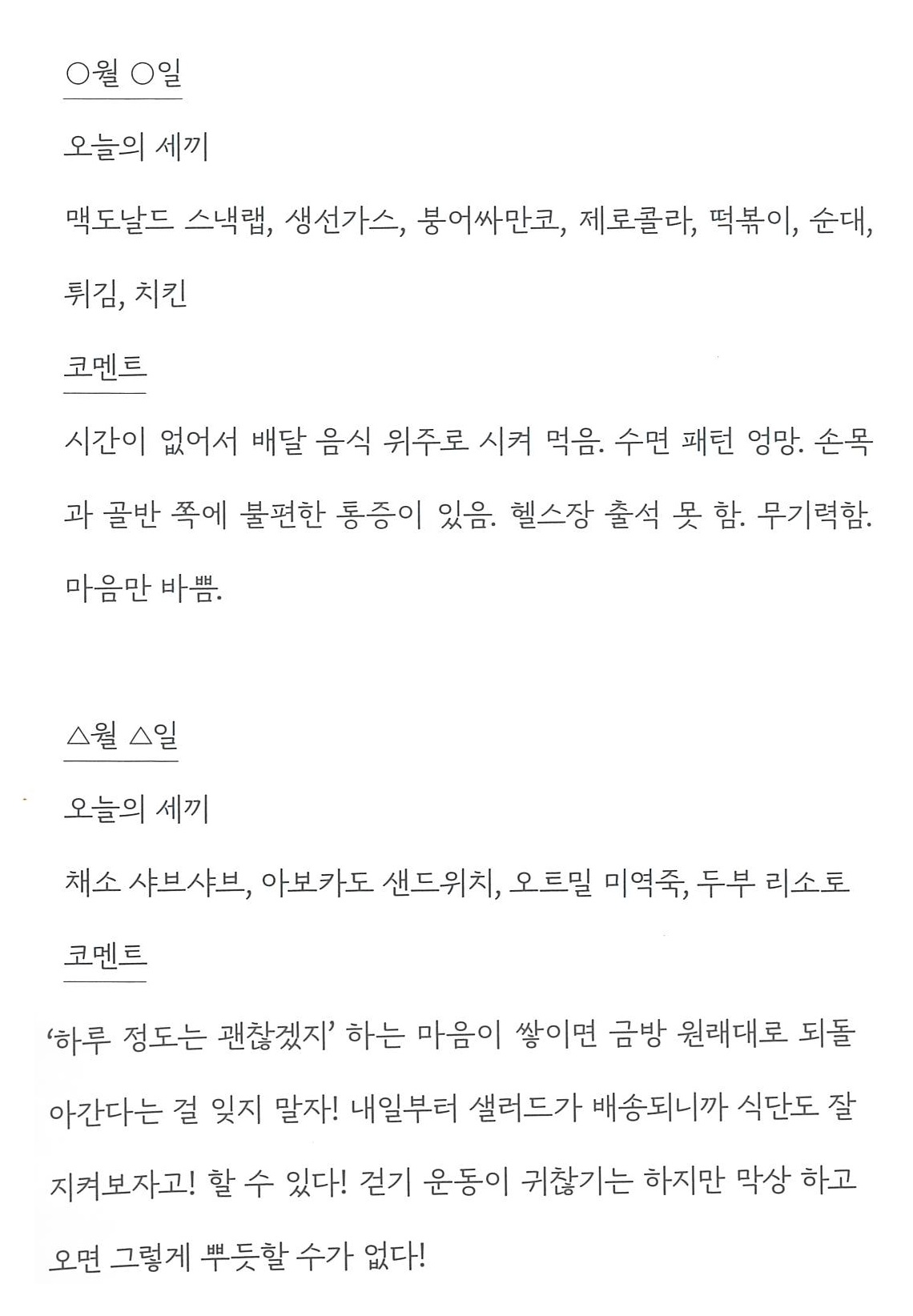 2. 나의 '삼시 세끼'를 주제로 일기를 작성합니다. 역시 예시를 참고하세요.