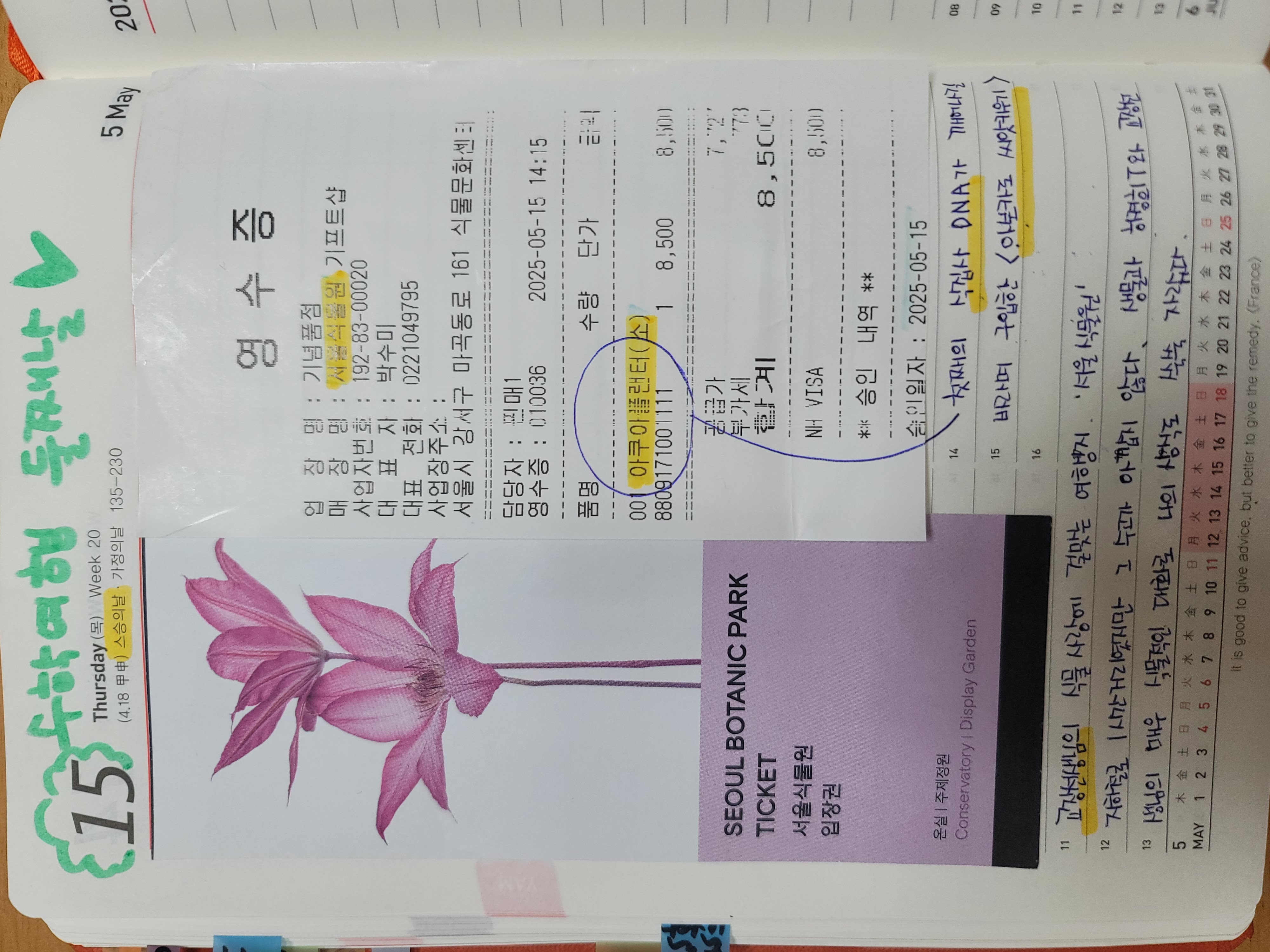 <예시1> '영수증'으로 기록하는 나의 여행: 영수증이나 입장권 등을 부착하고 그것과 관련된 생각이나 느낌을 기록합니다.