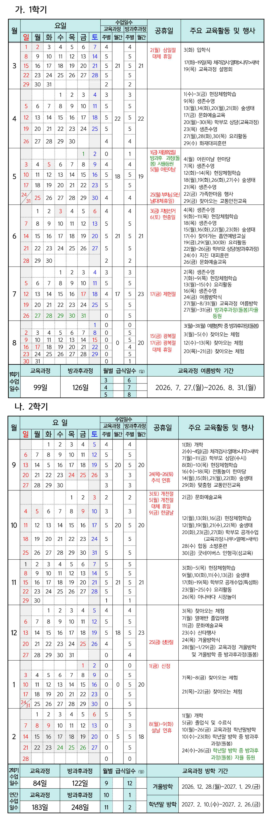 연간학사일정