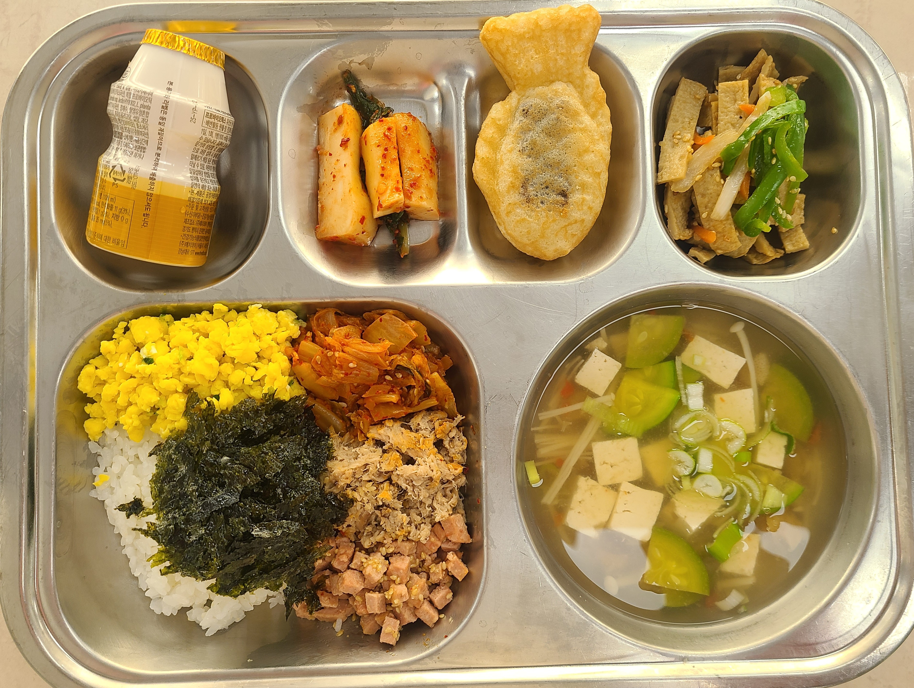 김치소보르밥 (1.5.6.9.13)팽이버섯두부된장국 (5.6.9)어묵볶음 (1.5.6.13)반반붕어빵(팥,슈크림) (1.2.5.6.16)