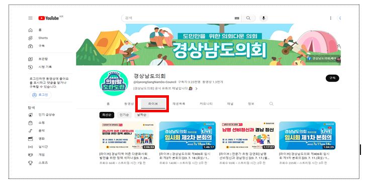 - 접속주소: https://www.youtube.com/@GyeongSangNamDo-Council