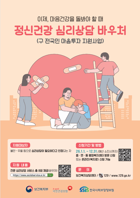 2026년 정신건강 심리상담 바우처 사업(구 전국민 마음투자 지원사업) 실시 안내