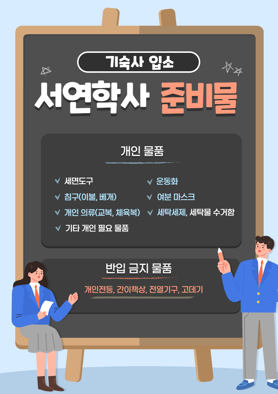 기숙사 입소시 준비물 안내