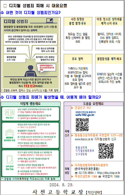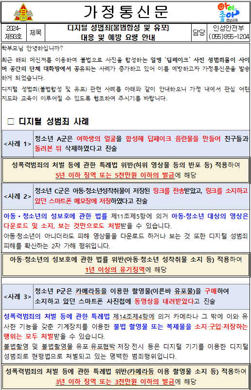 디지털 성범죄 대응 및 예방 요령 안내 가정통신문