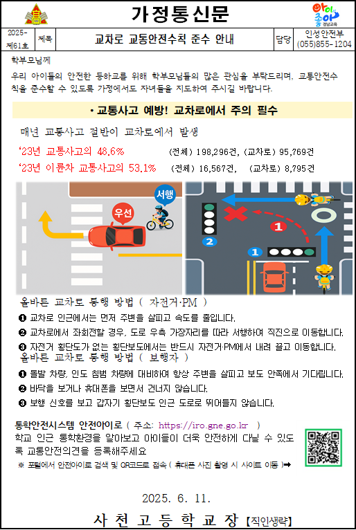 교차로 교통안전수칙 준수 안내 가정통신문