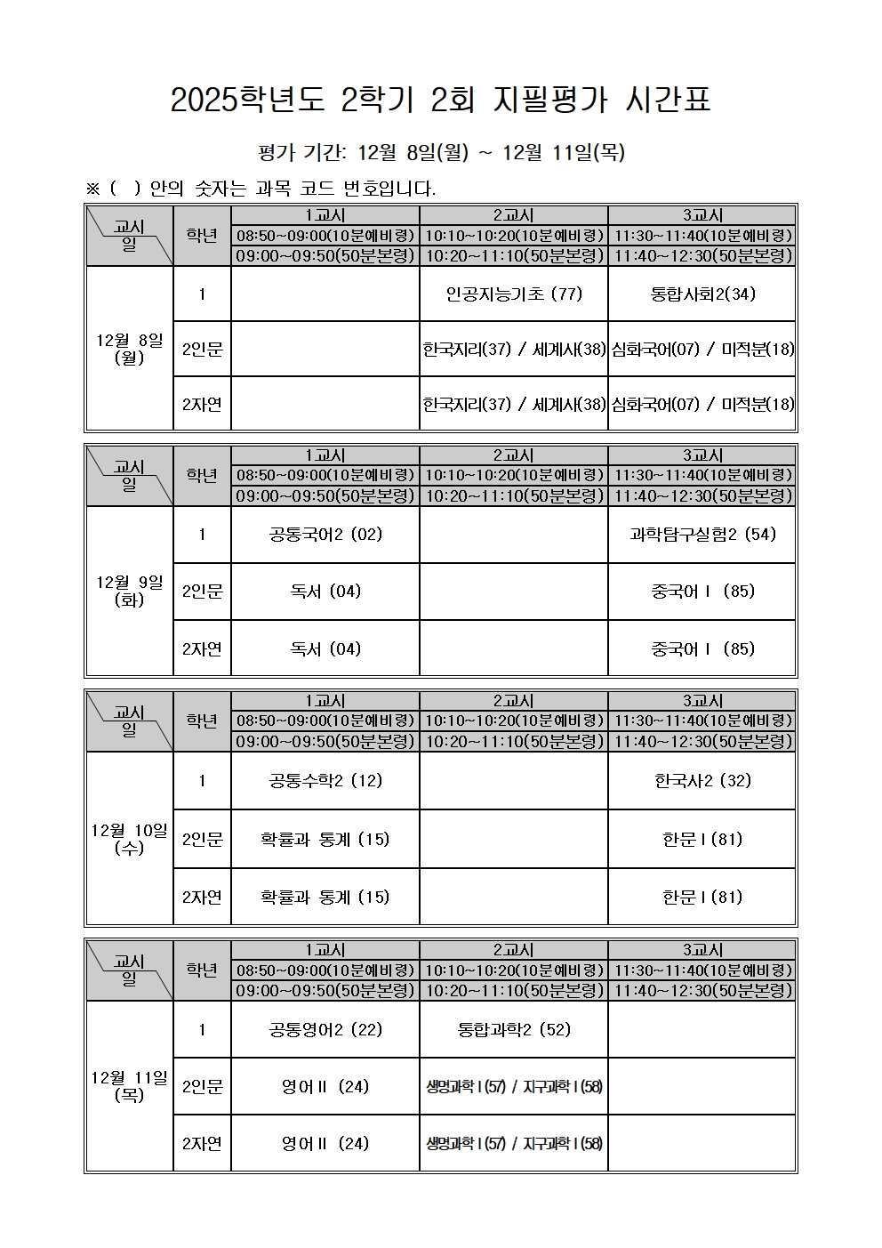 1. 평가 기간: 2025. 12. 8.(월) ~ 12. 11.(목)