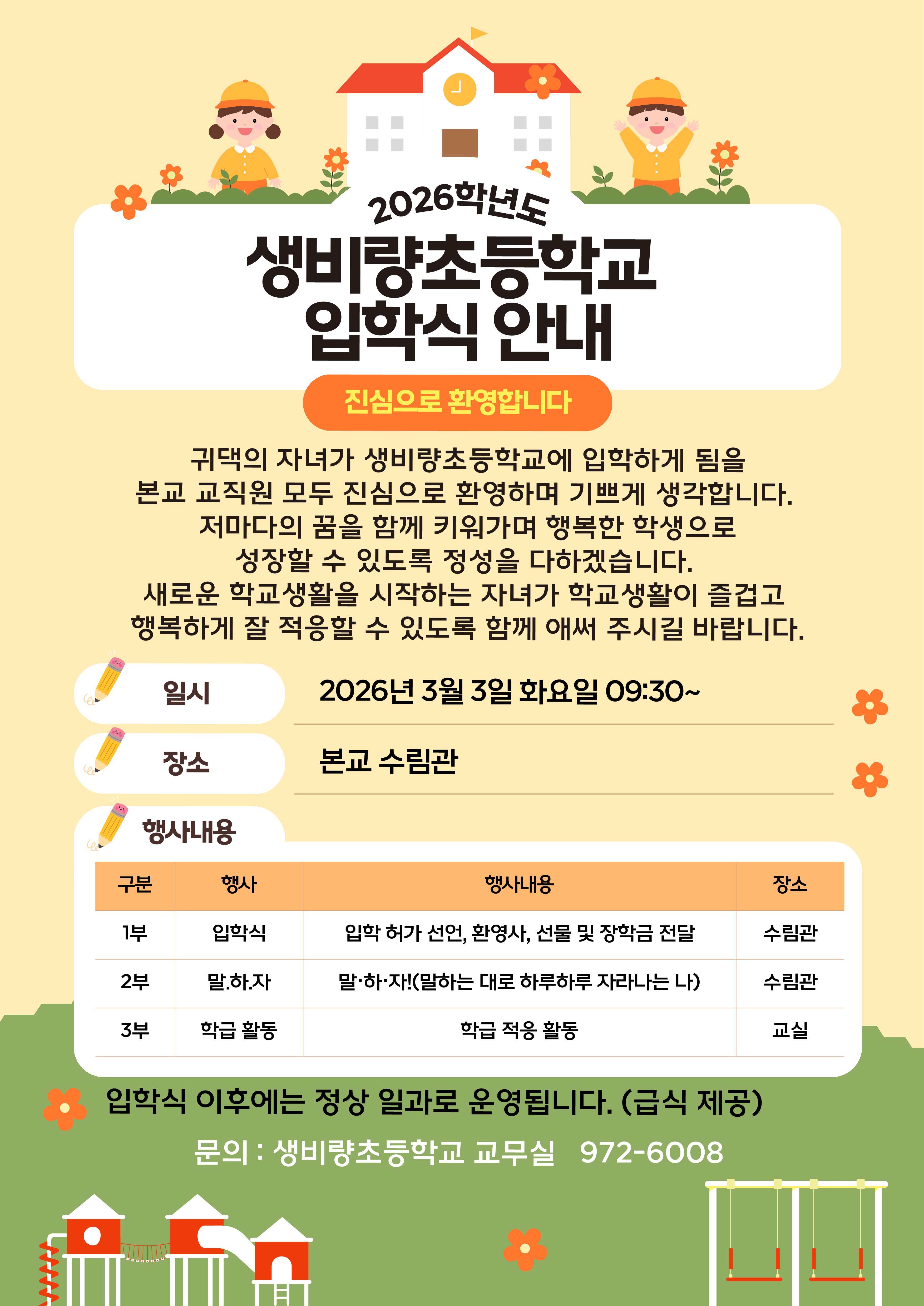 2026학년도 입학식(3월3일 9시 30분) 안내