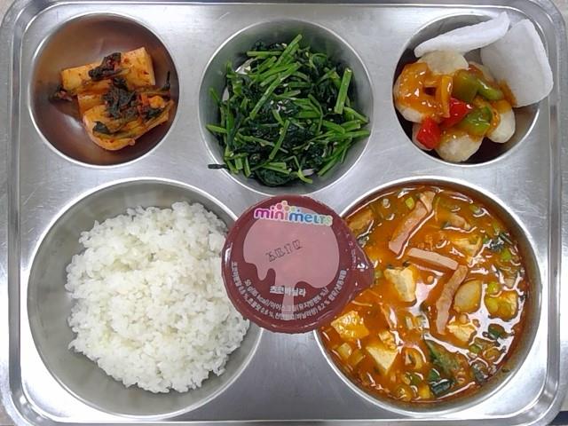 * 석식: 쌀밥, 햄모듬찌개, 깐소새우&알새우칩, 참나물무침, 알타리김치, 구슬아이스크림