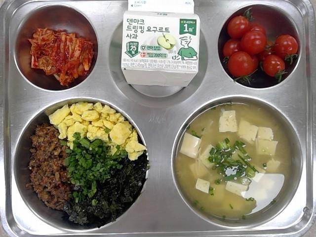 * 조식: 마제덮밥, 팽이미소된장국, 배추김치, 대추방울토마토, 드링킹사과요구르트