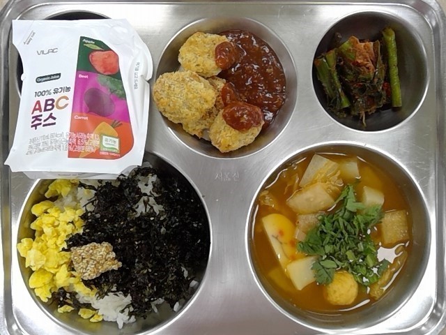 * 조식: 간장계란밥, 어묵김치국, 한입돈까스, 갓김치, 에이비씨주스